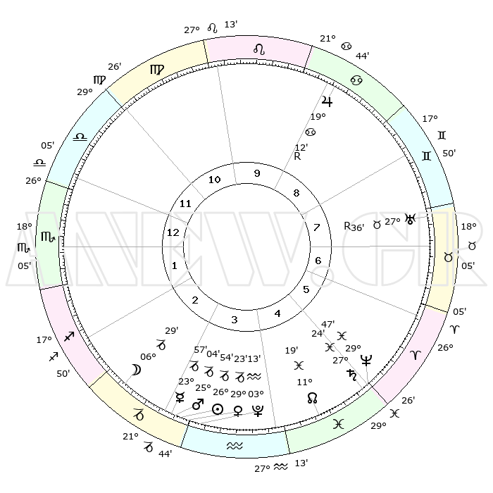| | ΘΕΣΕΙΣ ΠΛΑΝΗΤΩΝ ΑΣΤΡΟΛΟΓΙΚΟΥ ΧΑΡΤΗ ΤΗΣ ΣΤΙΓΜΗΣ ΑΥΤΗΣ | | | | Πλανήτης | Ζώδιο | Μοίρες | Δεκαήμ. | Σε οίκο | Απόκλιση | | Ακμές των οίκων | | Ηλιος | Αιγόκερως | 26°49' | Τρίτο | 4 | 20 S 47 | | 1ος | 23°29' | Ζυγός | | Σελήνη | Αιγόκερως | 05°27' | Πρώτο | 3 | 27 S 57 | | 2ος | 21°31' | Σκορπιός | | Ερμής | Αιγόκερως | 23°48' | Τρίτο | 3 | 23 S 12 | | 3ος | 23°01' | Τοξότης | | Αφροδίτη | Αιγόκερως | 29°16' | Τρίτο | 4 | 21 S 19 | | 4ος | 26°48' | Αιγόκερως | | Αρης | Αιγόκερως | 24°60' | Τρίτο | 3 | 22 S 05 | | 5ος | 29°45' | Υδροχόος | | Δίας | Καρκίνος | 19°13'R | Δεύτερο | 9 | 22 N 20 | | 6ος | 28°58' | Ιχθείς | | Κρόνος | Ιχθείς | 27°24' | Τρίτο | 5 | 03 S 04 | | 7ος | 23°29' | Κριός | | Ουρανός | Ταύρος | 27°36'R | Τρίτο | 8 | 19 N 26 | | 8ος | 21°31' | Ταύρος | | Ποσειδώνας | Ιχθείς | 29°47' | Τρίτο | 6 | 01 S 18 | | 9ος | 23°01' | Δίδυμοι | | Πλούτωνας | Υδροχόος | 03°13' | Πρώτο | 4 | 23 S 07 | | 10ος | 26°48' | Καρκίνος | | Β. Δεσμός | Ιχθείς | 11°19' | Δεύτερο | 5 | 07 S 19 | | 11ος | 29°45' | Λέων | | Ωροσκόπος | Ζυγός | 23°29' | Τρίτο | | | 12ος | 28°58' | Παρθένος | | Μεσουράνημα | Καρκίνος | 26°48' | Τρίτο | | | |