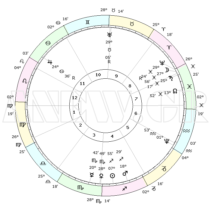 | | ΘΕΣΕΙΣ ΠΛΑΝΗΤΩΝ ΑΣΤΡΟΛΟΓΙΚΟΥ ΧΑΡΤΗ ΤΗΣ ΣΤΙΓΜΗΣ ΑΥΤΗΣ | | | | Πλανήτης | Ζώδιο | Μοίρες | Δεκαήμ. | Σε οίκο | Απόκλιση | | Ακμές των οίκων | | Ηλιος | Τοξότης | 07°53' | Πρώτο | 4 | 21 S 37 | | 1ος | 21°50' | Λέων | | Σελήνη | Ιχθείς | 27°26' | Τρίτο | 8 | 00 N 02 | | 2ος | 14°49' | Παρθένος | | Ερμής | Σκορπιός | 20°42' | Τρίτο | 4 | 15 S 28 | | 3ος | 12°40' | Ζυγός | | Αφροδίτη | Σκορπιός | 28°47' | Τρίτο | 4 | 19 S 09 | | 4ος | 15°25' | Σκορπιός | | Αρης | Τοξότης | 18°28' | Δεύτερο | 4 | 23 S 35 | | 5ος | 20°11' | Τοξότης | | Δίας | Καρκίνος | 24°36'R | Τρίτο | 12 | 21 N 21 | | 6ος | 22°53' | Αιγόκερως | | Κρόνος | Ιχθείς | 25°17' | Τρίτο | 8 | 04 S 03 | | 7ος | 21°50' | Υδροχόος | | Ουρανός | Ταύρος | 29°06'R | Τρίτο | 10 | 19 N 45 | | 8ος | 14°49' | Ιχθείς | | Ποσειδώνας | Ιχθείς | 29°24'R | Τρίτο | 8 | 01 S 29 | | 9ος | 12°40' | Κριός | | Πλούτωνας | Υδροχόος | 01°53' | Πρώτο | 6 | 23 S 24 | | 10ος | 15°25' | Ταύρος | | Β. Δεσμός | Ιχθείς | 13°52' | Δεύτερο | 7 | 06 S 21 | | 11ος | 20°11' | Δίδυμοι | | Ωροσκόπος | Λέων | 21°50' | Τρίτο | | | 12ος | 22°53' | Καρκίνος | | Μεσουράνημα | Ταύρος | 15°25' | Δεύτερο | | | |