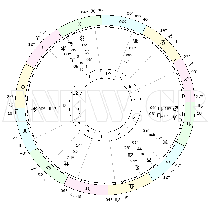 | ΘΕΣΕΙΣ ΠΛΑΝΗΤΩΝ ΑΣΤΡΟΛΟΓΙΚΟΥ ΧΑΡΤΗ ΤΗΣ ΣΤΙΓΜΗΣ ΑΥΤΗΣ | | Πλανήτης | Ζώδιο | Μοίρες | Δεκαήμ. | Σε οίκο | Απόκλιση | | Ακμές των οίκων | Ηλιος | Ζυγός | 25°15' | Τρίτο | 10 | 09 S 46 | | 1ος | 23°08' | Τοξότης | Σελήνη | Παρθένος | 20°28' | Τρίτο | 9 | 03 N 34 | | 2ος | 28°36' | Αιγόκερως | Ερμής | Σκορπιός | 16°42' | Δεύτερο | 11 | 18 S 49 | | 3ος | 07°57' | Ιχθείς | Αφροδίτη | Ζυγός | 05°36' | Πρώτο | 9 | 00 S 49 | | 4ος | 12°52' | Κριός | Αρης | Σκορπιός | 17°52' | Δεύτερο | 11 | 17 S 24 | | 5ος | 10°18' | Ταύρος | Δίας | Καρκίνος | 24°12' | Τρίτο | 7 | 21 N 19 | | 6ος | 02°38' | Δίδυμοι | Κρόνος | Ιχθείς | 26°40'R | Τρίτο | 3 | 03 S 37 | | 7ος | 23°08' | Δίδυμοι | Ουρανός | Δίδυμοι | 00°45'R | Πρώτο | 5 | 20 N 06 | | 8ος | 28°36' | Καρκίνος | Ποσειδώνας | Κριός | 00°06'R | Πρώτο | 3 | 01 S 13 | | 9ος | 07°57' | Παρθένος | Πλούτωνας | Υδροχόος | 01°22' | Πρώτο | 2 | 23 S 32 | | 10ος | 12°52' | Ζυγός | Β. Δεσμός | Ιχθείς | 16°07' | Δεύτερο | 3 | 05 S 28 | | 11ος | 10°18' | Σκορπιός | Ωροσκόπος | Τοξότης | 23°08' | Τρίτο | | | 12ος | 02°38' | Τοξότης | Μεσουράνημα | Ζυγός | 12°52' | Δεύτερο | | | |