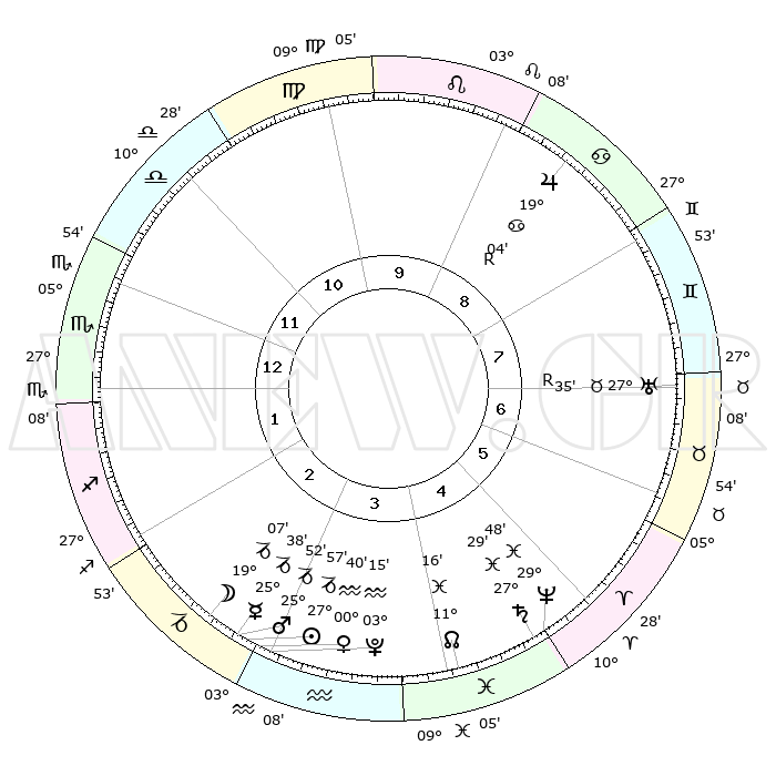 | | ΘΕΣΕΙΣ ΠΛΑΝΗΤΩΝ ΑΣΤΡΟΛΟΓΙΚΟΥ ΧΑΡΤΗ ΤΗΣ ΣΤΙΓΜΗΣ ΑΥΤΗΣ | | | | Πλανήτης | Ζώδιο | Μοίρες | Δεκαήμ. | Σε οίκο | Απόκλιση | | Ακμές των οίκων | | Ηλιος | Αιγόκερως | 27°53' | Τρίτο | 3 | 20 S 35 | | 1ος | 07°25' | Σκορπιός | | Σελήνη | Αιγόκερως | 18°16' | Δεύτερο | 3 | 26 S 10 | | 2ος | 06°18' | Τοξότης | | Ερμής | Αιγόκερως | 25°31' | Τρίτο | 3 | 22 S 56 | | 3ος | 08°56' | Αιγόκερως | | Αφροδίτη | Υδροχόος | 00°35' | Πρώτο | 3 | 21 S 03 | | 4ος | 13°39' | Υδροχόος | | Αρης | Αιγόκερως | 25°48' | Τρίτο | 3 | 21 S 57 | | 5ος | 16°25' | Ιχθείς | | Δίας | Καρκίνος | 19°05'R | Δεύτερο | 9 | 22 N 21 | | 6ος | 14°20' | Κριός | | Κρόνος | Ιχθείς | 27°29' | Τρίτο | 5 | 03 S 02 | | 7ος | 07°25' | Ταύρος | | Ουρανός | Ταύρος | 27°35'R | Τρίτο | 7 | 19 N 26 | | 8ος | 06°18' | Δίδυμοι | | Ποσειδώνας | Ιχθείς | 29°48' | Τρίτο | 5 | 01 S 18 | | 9ος | 08°56' | Καρκίνος | | Πλούτωνας | Υδροχόος | 03°15' | Πρώτο | 3 | 23 S 07 | | 10ος | 13°39' | Λέων | | Β. Δεσμός | Ιχθείς | 11°16' | Δεύτερο | 4 | 07 S 20 | | 11ος | 16°25' | Παρθένος | | Ωροσκόπος | Σκορπιός | 07°25' | Πρώτο | | | 12ος | 14°20' | Ζυγός | | Μεσουράνημα | Λέων | 13°39' | Δεύτερο | | | |