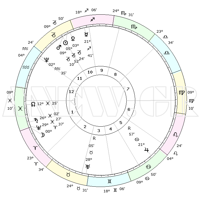 | | ΘΕΣΕΙΣ ΠΛΑΝΗΤΩΝ ΑΣΤΡΟΛΟΓΙΚΟΥ ΧΑΡΤΗ ΤΗΣ ΣΤΙΓΜΗΣ ΑΥΤΗΣ | | | | Πλανήτης | Ζώδιο | Μοίρες | Δεκαήμ. | Σε οίκο | Απόκλιση | | Ακμές των οίκων | | Ηλιος | Αιγόκερως | 05°47' | Πρώτο | 11 | 23 S 18 | | 1ος | 01°41' | Υδροχόος | | Σελήνη | Ιχθείς | 29°37' | Τρίτο | 2 | 01 N 19 | | 2ος | 16°03' | Ιχθείς | | Ερμής | Τοξότης | 21°34' | Τρίτο | 11 | 23 S 11 | | 3ος | 24°14' | Κριός | | Αφροδίτη | Αιγόκερως | 03°19' | Πρώτο | 11 | 23 S 43 | | 4ος | 22°24' | Ταύρος | | Αρης | Αιγόκερως | 09°06' | Πρώτο | 12 | 23 S 59 | | 5ος | 15°03' | Δίδυμοι | | Δίας | Καρκίνος | 21°57'R | Τρίτο | 6 | 21 N 52 | | 6ος | 06°32' | Καρκίνος | | Κρόνος | Ιχθείς | 26°02' | Τρίτο | 2 | 03 S 40 | | 7ος | 01°41' | Λέων | | Ουρανός | Ταύρος | 28°05'R | Τρίτο | 4 | 19 N 32 | | 8ος | 16°03' | Παρθένος | | Ποσειδώνας | Ιχθείς | 29°27' | Τρίτο | 2 | 01 S 27 | | 9ος | 24°14' | Ζυγός | | Πλούτωνας | Υδροχόος | 02°35' | Πρώτο | 1 | 23 S 15 | | 10ος | 22°24' | Σκορπιός | | Β. Δεσμός | Ιχθείς | 12°25' | Δεύτερο | 1 | 06 S 54 | | 11ος | 15°03' | Τοξότης | | Ωροσκόπος | Υδροχόος | 01°41' | Πρώτο | | | 12ος | 06°32' | Αιγόκερως | | Μεσουράνημα | Σκορπιός | 22°24' | Τρίτο | | | |
