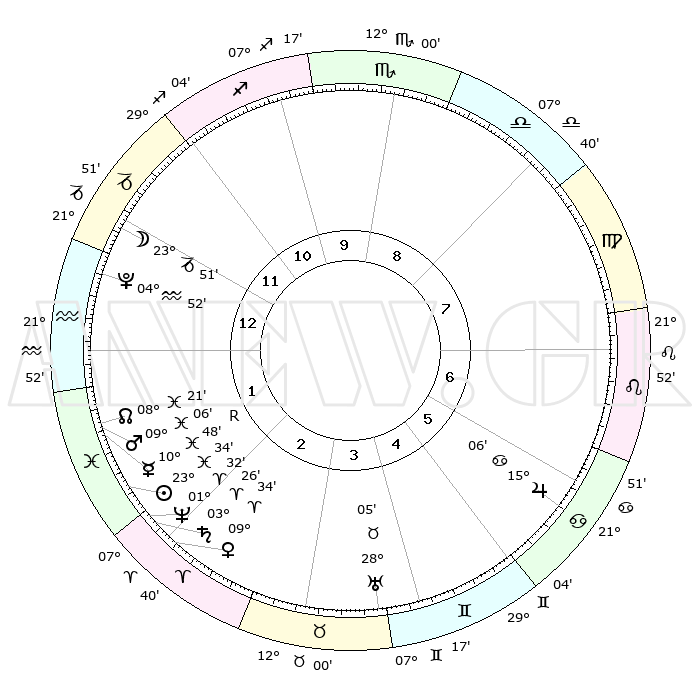 | | ΘΕΣΕΙΣ ΠΛΑΝΗΤΩΝ ΑΣΤΡΟΛΟΓΙΚΟΥ ΧΑΡΤΗ ΤΗΣ ΣΤΙΓΜΗΣ ΑΥΤΗΣ | | | | Πλανήτης | Ζώδιο | Μοίρες | Δεκαήμ. | Σε οίκο | Απόκλιση | | Ακμές των οίκων | | Ηλιος | Ιχθείς | 23°29' | Τρίτο | 2 | 02 S 35 | | 1ος | 21°02' | Αιγόκερως | | Σελήνη | Αιγόκερως | 22°60' | Τρίτο | 1 | 25 S 13 | | 2ος | 03°24' | Ιχθείς | | Ερμής | Ιχθείς | 10°50'R | Δεύτερο | 2 | 05 S 04 | | 3ος | 13°01' | Κριός | | Αφροδίτη | Κριός | 09°29' | Πρώτο | 2 | 02 N 46 | | 4ος | 13°07' | Ταύρος | | Αρης | Ιχθείς | 09°03' | Πρώτο | 2 | 09 S 11 | | 5ος | 06°39' | Δίδυμοι | | Δίας | Καρκίνος | 15°06' | Δεύτερο | 6 | 22 N 56 | | 6ος | 27°52' | Δίδυμοι | | Κρόνος | Κριός | 03°26' | Πρώτο | 2 | 00 S 35 | | 7ος | 21°02' | Καρκίνος | | Ουρανός | Ταύρος | 28°05' | Τρίτο | 4 | 19 N 33 | | 8ος | 03°24' | Παρθένος | | Ποσειδώνας | Κριός | 01°32' | Πρώτο | 2 | 00 S 35 | | 9ος | 13°01' | Ζυγός | | Πλούτωνας | Υδροχόος | 04°52' | Πρώτο | 1 | 22 S 50 | | 10ος | 13°07' | Σκορπιός | | Β. Δεσμός | Ιχθείς | 08°21' | Πρώτο | 2 | 08 S 26 | | 11ος | 06°39' | Τοξότης | | Ωροσκόπος | Αιγόκερως | 21°02' | Τρίτο | | | 12ος | 27°52' | Τοξότης | | Μεσουράνημα | Σκορπιός | 13°07' | Δεύτερο | | | |