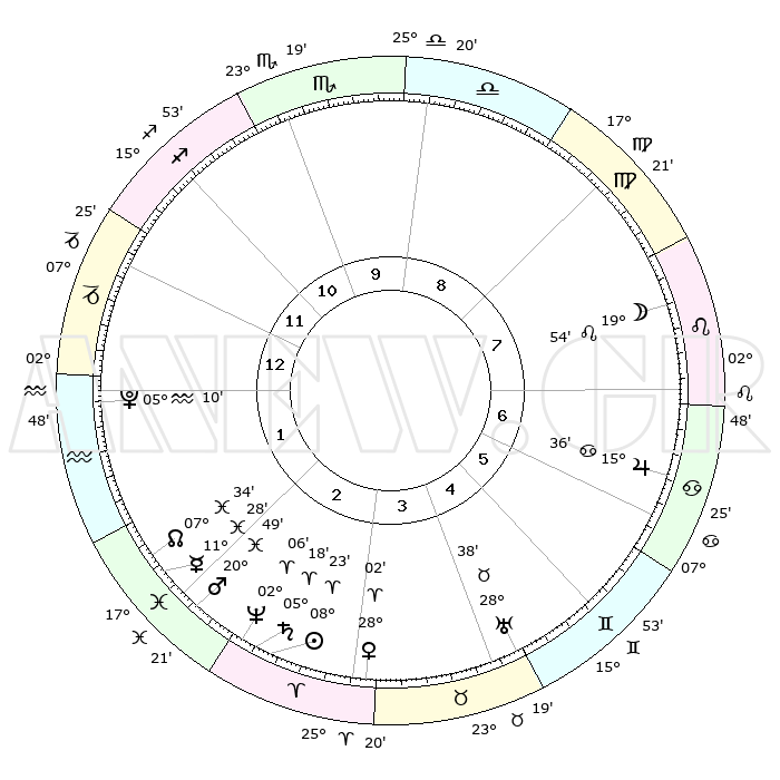 | | ΘΕΣΕΙΣ ΠΛΑΝΗΤΩΝ ΑΣΤΡΟΛΟΓΙΚΟΥ ΧΑΡΤΗ ΤΗΣ ΣΤΙΓΜΗΣ ΑΥΤΗΣ | | | | Πλανήτης | Ζώδιο | Μοίρες | Δεκαήμ. | Σε οίκο | Απόκλιση | | Ακμές των οίκων | | Ηλιος | Κριός | 08°19' | Πρώτο | 3 | 03 N 18 | | 1ος | 10°22' | Αιγόκερως | | Σελήνη | Λέων | 19°08' | Δεύτερο | 7 | 16 N 45 | | 2ος | 20°10' | Υδροχόος | | Ερμής | Ιχθείς | 11°26' | Δεύτερο | 2 | 08 S 01 | | 3ος | 00°27' | Κριός | | Αφροδίτη | Κριός | 27°57' | Τρίτο | 3 | 10 N 13 | | 4ος | 02°34' | Ταύρος | | Αρης | Ιχθείς | 20°47' | Τρίτο | 2 | 04 S 37 | | 5ος | 27°22' | Ταύρος | | Δίας | Καρκίνος | 15°36' | Δεύτερο | 7 | 22 N 53 | | 6ος | 18°41' | Δίδυμοι | | Κρόνος | Κριός | 05°17' | Πρώτο | 3 | 00 N 09 | | 7ος | 10°22' | Καρκίνος | | Ουρανός | Ταύρος | 28°38' | Τρίτο | 5 | 19 N 41 | | 8ος | 20°10' | Λέων | | Ποσειδώνας | Κριός | 02°06' | Πρώτο | 3 | 00 S 22 | | 9ος | 00°27' | Ζυγός | | Πλούτωνας | Υδροχόος | 05°10' | Πρώτο | 1 | 22 S 48 | | 10ος | 02°34' | Σκορπιός | | Β. Δεσμός | Ιχθείς | 07°34' | Πρώτο | 2 | 08 S 44 | | 11ος | 27°22' | Σκορπιός | | Ωροσκόπος | Αιγόκερως | 10°22' | Δεύτερο | | | 12ος | 18°41' | Τοξότης | | Μεσουράνημα | Σκορπιός | 02°34' | Πρώτο | | | |