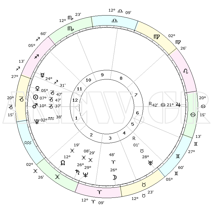 | | ΘΕΣΕΙΣ ΠΛΑΝΗΤΩΝ ΑΣΤΡΟΛΟΓΙΚΟΥ ΧΑΡΤΗ ΤΗΣ ΣΤΙΓΜΗΣ ΑΥΤΗΣ | | | | Πλανήτης | Ζώδιο | Μοίρες | Δεκαήμ. | Σε οίκο | Απόκλιση | | Ακμές των οίκων | | Ηλιος | Αιγόκερως | 07°43' | Πρώτο | 1 | 23 S 12 | | 1ος | 25°09' | Τοξότης | | Σελήνη | Κριός | 25°47' | Τρίτο | 4 | 13 N 17 | | 2ος | 01°06' | Υδροχόος | | Ερμής | Τοξότης | 24°25' | Τρίτο | 12 | 23 S 34 | | 3ος | 10°40' | Ιχθείς | | Αφροδίτη | Αιγόκερως | 05°42' | Πρώτο | 1 | 23 S 43 | | 4ος | 15°20' | Κριός | | Αρης | Αιγόκερως | 10°33' | Δεύτερο | 1 | 23 S 53 | | 5ος | 12°26' | Ταύρος | | Δίας | Καρκίνος | 21°43'R | Τρίτο | 7 | 21 N 55 | | 6ος | 04°35' | Δίδυμοι | | Κρόνος | Ιχθείς | 26°08' | Τρίτο | 3 | 03 S 37 | | 7ος | 25°09' | Δίδυμοι | | Ουρανός | Ταύρος | 28°01'R | Τρίτο | 5 | 19 N 31 | | 8ος | 01°06' | Λέων | | Ποσειδώνας | Ιχθείς | 29°29' | Τρίτο | 3 | 01 S 26 | | 9ος | 10°40' | Παρθένος | | Πλούτωνας | Υδροχόος | 02°38' | Πρώτο | 2 | 23 S 14 | | 10ος | 15°19' | Ζυγός | | Β. Δεσμός | Ιχθείς | 12°19' | Δεύτερο | 3 | 06 S 56 | | 11ος | 12°26' | Σκορπιός | | Ωροσκόπος | Τοξότης | 25°09' | Τρίτο | | | 12ος | 04°35' | Τοξότης | | Μεσουράνημα | Ζυγός | 15°19' | Δεύτερο | | | |