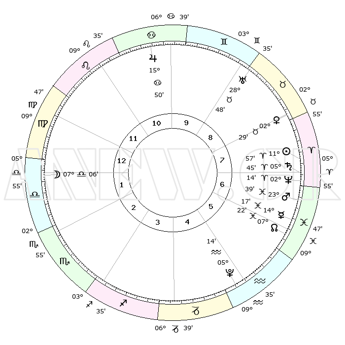 | | ΘΕΣΕΙΣ ΠΛΑΝΗΤΩΝ ΑΣΤΡΟΛΟΓΙΚΟΥ ΧΑΡΤΗ ΤΗΣ ΣΤΙΓΜΗΣ ΑΥΤΗΣ | | | | Πλανήτης | Ζώδιο | Μοίρες | Δεκαήμ. | Σε οίκο | Απόκλιση | | Ακμές των οίκων | | Ηλιος | Κριός | 11°53' | Δεύτερο | 7 | 04 N 42 | | 1ος | 17°18' | Παρθένος | | Σελήνη | Ζυγός | 06°18' | Πρώτο | 1 | 04 S 43 | | 2ος | 12°51' | Ζυγός | | Ερμής | Ιχθείς | 14°14' | Δεύτερο | 6 | 07 S 30 | | 3ος | 12°44' | Σκορπιός | | Αφροδίτη | Ταύρος | 02°24' | Πρώτο | 8 | 11 N 55 | | 4ος | 15°40' | Τοξότης | | Αρης | Ιχθείς | 23°36' | Τρίτο | 7 | 03 S 30 | | 5ος | 18°56' | Αιγόκερως | | Δίας | Καρκίνος | 15°49' | Δεύτερο | 10 | 22 N 52 | | 6ος | 19°52' | Υδροχόος | | Κρόνος | Κριός | 05°44' | Πρώτο | 7 | 00 N 19 | | 7ος | 17°18' | Ιχθείς | | Ουρανός | Ταύρος | 28°47' | Τρίτο | 9 | 19 N 43 | | 8ος | 12°51' | Κριός | | Ποσειδώνας | Κριός | 02°14' | Πρώτο | 7 | 00 S 19 | | 9ος | 12°44' | Ταύρος | | Πλούτωνας | Υδροχόος | 05°14' | Πρώτο | 5 | 22 S 47 | | 10ος | 15°40' | Δίδυμοι | | Β. Δεσμός | Ιχθείς | 07°22' | Πρώτο | 6 | 08 S 48 | | 11ος | 18°56' | Καρκίνος | | Ωροσκόπος | Παρθένος | 17°18' | Δεύτερο | | | 12ος | 19°52' | Λέων | | Μεσουράνημα | Δίδυμοι | 15°40' | Δεύτερο | | | |