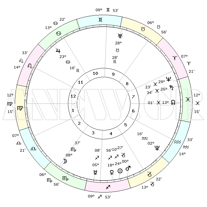 | | ΘΕΣΕΙΣ ΠΛΑΝΗΤΩΝ ΑΣΤΡΟΛΟΓΙΚΟΥ ΧΑΡΤΗ ΤΗΣ ΣΤΙΓΜΗΣ ΑΥΤΗΣ | | | | Πλανήτης | Ζώδιο | Μοίρες | Δεκαήμ. | Σε οίκο | Απόκλιση | | Ακμές των οίκων | | Ηλιος | Τοξότης | 23°06' | Τρίτο | 4 | 23 S 15 | | 1ος | 27°28' | Λέων | | Σελήνη | Ζυγός | 26°11' | Τρίτο | 3 | 13 S 19 | | 2ος | 21°03' | Παρθένος | | Ερμής | Τοξότης | 03°43' | Πρώτο | 4 | 19 S 22 | | 3ος | 19°29' | Ζυγός | | Αφροδίτη | Τοξότης | 17°37' | Δεύτερο | 4 | 22 S 41 | | 4ος | 22°22' | Σκορπιός | | Αρης | Τοξότης | 29°39' | Τρίτο | 5 | 24 S 12 | | 5ος | 26°44' | Τοξότης | | Δίας | Καρκίνος | 23°23'R | Τρίτο | 11 | 21 N 36 | | 6ος | 28°54' | Αιγόκερως | | Κρόνος | Ιχθείς | 25°32' | Τρίτο | 8 | 03 S 54 | | 7ος | 27°28' | Υδροχόος | | Ουρανός | Ταύρος | 28°30'R | Τρίτο | 10 | 19 N 37 | | 8ος | 21°03' | Ιχθείς | | Ποσειδώνας | Ιχθείς | 29°23' | Τρίτο | 8 | 01 S 29 | | 9ος | 19°29' | Κριός | | Πλούτωνας | Υδροχόος | 02°14' | Πρώτο | 6 | 23 S 19 | | 10ος | 22°22' | Ταύρος | | Β. Δεσμός | Ιχθείς | 13°05' | Δεύτερο | 7 | 06 S 39 | | 11ος | 26°44' | Δίδυμοι | | Ωροσκόπος | Λέων | 27°28' | Τρίτο | | | 12ος | 28°54' | Καρκίνος | | Μεσουράνημα | Ταύρος | 22°22' | Τρίτο | | | |