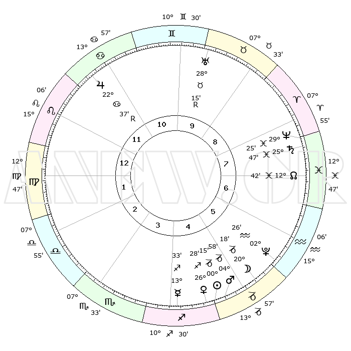 | | ΘΕΣΕΙΣ ΠΛΑΝΗΤΩΝ ΑΣΤΡΟΛΟΓΙΚΟΥ ΧΑΡΤΗ ΤΗΣ ΣΤΙΓΜΗΣ ΑΥΤΗΣ | | | | Πλανήτης | Ζώδιο | Μοίρες | Δεκαήμ. | Σε οίκο | Απόκλιση | | Ακμές των οίκων | | Ηλιος | Αιγόκερως | 00°11' | Πρώτο | 5 | 23 S 26 | | 1ος | 22°56' | Λέων | | Σελήνη | Αιγόκερως | 19°28' | Δεύτερο | 5 | 25 S 57 | | 2ος | 16°03' | Παρθένος | | Ερμής | Τοξότης | 13°27' | Δεύτερο | 4 | 21 S 45 | | 3ος | 14°01' | Ζυγός | | Αφροδίτη | Τοξότης | 26°23' | Τρίτο | 5 | 23 S 30 | | 4ος | 16°47' | Σκορπιός | | Αρης | Αιγόκερως | 04°55' | Πρώτο | 5 | 24 S 10 | | 5ος | 21°29' | Τοξότης | | Δίας | Καρκίνος | 22°37'R | Τρίτο | 11 | 21 N 45 | | 6ος | 24°04' | Αιγόκερως | | Κρόνος | Ιχθείς | 25°47' | Τρίτο | 8 | 03 S 47 | | 7ος | 22°56' | Υδροχόος | | Ουρανός | Ταύρος | 28°15'R | Τρίτο | 10 | 19 N 34 | | 8ος | 16°03' | Ιχθείς | | Ποσειδώνας | Ιχθείς | 29°25' | Τρίτο | 8 | 01 S 28 | | 9ος | 14°01' | Κριός | | Πλούτωνας | Υδροχόος | 02°26' | Πρώτο | 6 | 23 S 17 | | 10ος | 16°47' | Ταύρος | | Β. Δεσμός | Ιχθείς | 12°43' | Δεύτερο | 7 | 06 S 47 | | 11ος | 21°29' | Δίδυμοι | | Ωροσκόπος | Λέων | 22°56' | Τρίτο | | | 12ος | 24°04' | Καρκίνος | | Μεσουράνημα | Ταύρος | 16°47' | Δεύτερο | | | |