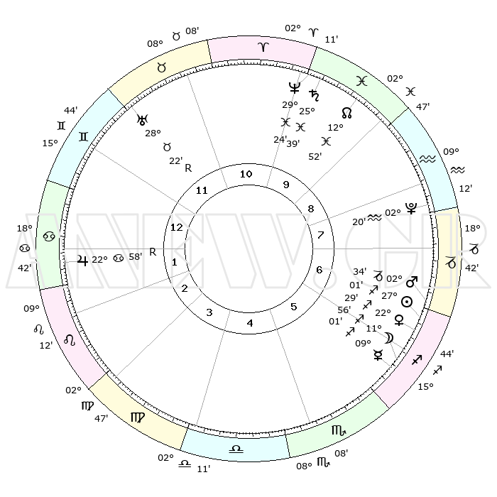 | | ΘΕΣΕΙΣ ΠΛΑΝΗΤΩΝ ΑΣΤΡΟΛΟΓΙΚΟΥ ΧΑΡΤΗ ΤΗΣ ΣΤΙΓΜΗΣ ΑΥΤΗΣ | | | | Πλανήτης | Ζώδιο | Μοίρες | Δεκαήμ. | Σε οίκο | Απόκλιση | | Ακμές των οίκων | | Ηλιος | Τοξότης | 26°34' | Τρίτο | 12 | 23 S 23 | | 1ος | 03°20' | Αιγόκερως | | Σελήνη | Τοξότης | 06°41' | Πρώτο | 11 | 26 S 19 | | 2ος | 11°20' | Υδροχόος | | Ερμής | Τοξότης | 08°24' | Πρώτο | 11 | 20 S 35 | | 3ος | 21°31' | Ιχθείς | | Αφροδίτη | Τοξότης | 21°55' | Τρίτο | 12 | 23 S 09 | | 4ος | 24°54' | Κριός | | Αρης | Αιγόκερως | 02°14' | Πρώτο | 12 | 24 S 13 | | 5ος | 20°42' | Ταύρος | | Δίας | Καρκίνος | 23°01'R | Τρίτο | 7 | 21 N 40 | | 6ος | 12°19' | Δίδυμοι | | Κρόνος | Ιχθείς | 25°38' | Τρίτο | 3 | 03 S 51 | | 7ος | 03°20' | Καρκίνος | | Ουρανός | Ταύρος | 28°23'R | Τρίτο | 5 | 19 N 36 | | 8ος | 11°20' | Λέων | | Ποσειδώνας | Ιχθείς | 29°23' | Τρίτο | 3 | 01 S 28 | | 9ος | 21°31' | Παρθένος | | Πλούτωνας | Υδροχόος | 02°20' | Πρώτο | 1 | 23 S 18 | | 10ος | 24°54' | Ζυγός | | Β. Δεσμός | Ιχθείς | 12°54' | Δεύτερο | 2 | 06 S 43 | | 11ος | 20°42' | Σκορπιός | | Ωροσκόπος | Αιγόκερως | 03°20' | Πρώτο | | | 12ος | 12°19' | Τοξότης | | Μεσουράνημα | Ζυγός | 24°54' | Τρίτο | | | |