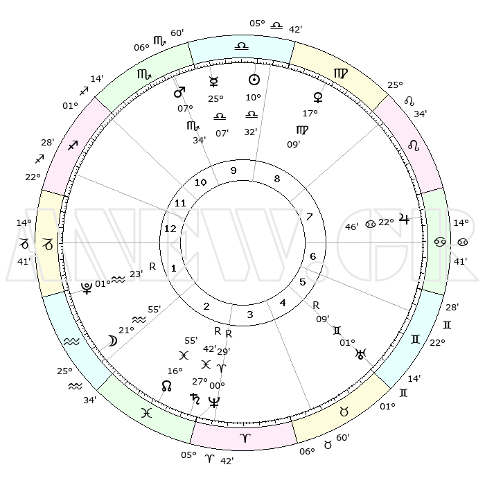 | ΘΕΣΕΙΣ ΠΛΑΝΗΤΩΝ ΑΣΤΡΟΛΟΓΙΚΟΥ ΧΑΡΤΗ ΤΗΣ ΣΤΙΓΜΗΣ ΑΥΤΗΣ | | Πλανήτης | Ζώδιο | Μοίρες | Δεκαήμ. | Σε οίκο | Απόκλιση | | Ακμές των οίκων | Ηλιος | Ζυγός | 10°28' | Δεύτερο | 9 | 04 S 09 | | 1ος | 22°29' | Τοξότης | Σελήνη | Υδροχόος | 21°02' | Τρίτο | 2 | 16 S 46 | | 2ος | 27°48' | Αιγόκερως | Ερμής | Ζυγός | 25°01' | Τρίτο | 10 | 10 S 03 | | 3ος | 07°03' | Ιχθείς | Αφροδίτη | Παρθένος | 17°04' | Δεύτερο | 9 | 06 N 20 | | 4ος | 12°03' | Κριός | Αρης | Σκορπιός | 07°32' | Πρώτο | 10 | 14 S 07 | | 5ος | 09°37' | Ταύρος | Δίας | Καρκίνος | 22°45' | Τρίτο | 7 | 21 N 32 | | 6ος | 01°60' | Δίδυμοι | Κρόνος | Ιχθείς | 27°42'R | Τρίτο | 3 | 03 S 13 | | 7ος | 22°29' | Δίδυμοι | Ουρανός | Δίδυμοι | 01°09'R | Πρώτο | 5 | 20 N 11 | | 8ος | 27°48' | Καρκίνος | Ποσειδώνας | Κριός | 00°29'R | Πρώτο | 3 | 01 S 04 | | 9ος | 07°03' | Παρθένος | Πλούτωνας | Υδροχόος | 01°24'R | Πρώτο | 2 | 23 S 32 | | 10ος | 12°03' | Ζυγός | Β. Δεσμός | Ιχθείς | 16°55' | Δεύτερο | 3 | 05 S 10 | | 11ος | 09°37' | Σκορπιός | Ωροσκόπος | Τοξότης | 22°29' | Τρίτο | | | 12ος | 01°60' | Τοξότης | Μεσουράνημα | Ζυγός | 12°03' | Δεύτερο | | | |
