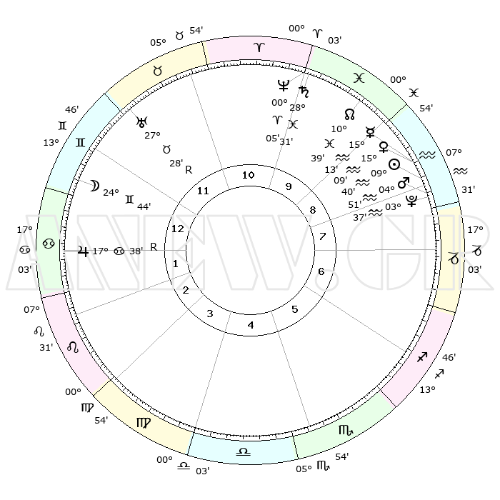 | | ΘΕΣΕΙΣ ΠΛΑΝΗΤΩΝ ΑΣΤΡΟΛΟΓΙΚΟΥ ΧΑΡΤΗ ΤΗΣ ΣΤΙΓΜΗΣ ΑΥΤΗΣ | | | | Πλανήτης | Ζώδιο | Μοίρες | Δεκαήμ. | Σε οίκο | Απόκλιση | | Ακμές των οίκων | | Ηλιος | Υδροχόος | 09°36' | Πρώτο | 9 | 17 S 51 | | 1ος | 23°23' | Δίδυμοι | | Σελήνη | Δίδυμοι | 23°39' | Τρίτο | 1 | 28 N 19 | | 2ος | 14°41' | Καρκίνος | | Ερμής | Υδροχόος | 15°06' | Δεύτερο | 9 | 18 S 13 | | 3ος | 06°08' | Λέων | | Αφροδίτη | Υδροχόος | 15°03' | Δεύτερο | 9 | 17 S 35 | | 4ος | 01°27' | Παρθένος | | Αρης | Υδροχόος | 04°47' | Πρώτο | 8 | 20 S 04 | | 5ος | 04°15' | Ζυγός | | Δίας | Καρκίνος | 17°38'R | Δεύτερο | 2 | 22 N 34 | | 6ος | 14°32' | Σκορπιός | | Κρόνος | Ιχθείς | 28°31' | Τρίτο | 10 | 02 S 35 | | 7ος | 23°23' | Τοξότης | | Ουρανός | Ταύρος | 27°28'R | Τρίτο | 12 | 19 N 24 | | 8ος | 14°41' | Αιγόκερως | | Ποσειδώνας | Κριός | 00°05' | Πρώτο | 10 | 01 S 11 | | 9ος | 06°08' | Υδροχόος | | Πλούτωνας | Υδροχόος | 03°37' | Πρώτο | 8 | 23 S 02 | | 10ος | 01°27' | Ιχθείς | | Β. Δεσμός | Ιχθείς | 10°40' | Δεύτερο | 10 | 07 S 34 | | 11ος | 04°15' | Κριός | | Ωροσκόπος | Δίδυμοι | 23°23' | Τρίτο | | | 12ος | 14°32' | Ταύρος | | Μεσουράνημα | Ιχθείς | 01°27' | Πρώτο | | | |