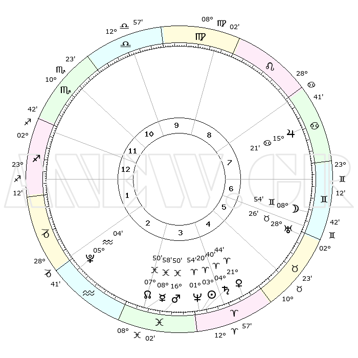 | | ΘΕΣΕΙΣ ΠΛΑΝΗΤΩΝ ΑΣΤΡΟΛΟΓΙΚΟΥ ΧΑΡΤΗ ΤΗΣ ΣΤΙΓΜΗΣ ΑΥΤΗΣ | | | | Πλανήτης | Ζώδιο | Μοίρες | Δεκαήμ. | Σε οίκο | Απόκλιση | | Ακμές των οίκων | | Ηλιος | Κριός | 03°15' | Πρώτο | 4 | 01 N 18 | | 1ος | 00°18' | Τοξότης | | Σελήνη | Δίδυμοι | 07°48' | Πρώτο | 7 | 26 N 46 | | 2ος | 01°28' | Αιγόκερως | | Ερμής | Ιχθείς | 08°57' | Πρώτο | 3 | 07 S 58 | | 3ος | 07°13' | Υδροχόος | | Αφροδίτη | Κριός | 21°39' | Τρίτο | 5 | 07 N 44 | | 4ος | 13°16' | Ιχθείς | | Αρης | Ιχθείς | 16°46' | Δεύτερο | 4 | 06 S 12 | | 5ος | 14°16' | Κριός | | Δίας | Καρκίνος | 15°21' | Δεύτερο | 8 | 22 N 55 | | 6ος | 09°17' | Ταύρος | | Κρόνος | Κριός | 04°39' | Πρώτο | 4 | 00 S 06 | | 7ος | 00°18' | Δίδυμοι | | Ουρανός | Ταύρος | 28°26' | Τρίτο | 6 | 19 N 38 | | 8ος | 01°28' | Καρκίνος | | Ποσειδώνας | Κριός | 01°54' | Πρώτο | 4 | 00 S 27 | | 9ος | 07°13' | Λέων | | Πλούτωνας | Υδροχόος | 05°04' | Πρώτο | 2 | 22 S 48 | | 10ος | 13°16' | Παρθένος | | Β. Δεσμός | Ιχθείς | 07°50' | Πρώτο | 3 | 08 S 38 | | 11ος | 14°16' | Ζυγός | | Ωροσκόπος | Τοξότης | 00°18' | Πρώτο | | | 12ος | 09°17' | Σκορπιός | | Μεσουράνημα | Παρθένος | 13°16' | Δεύτερο | | | |