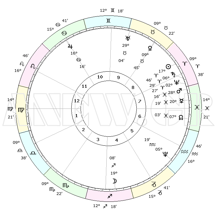 | | ΘΕΣΕΙΣ ΠΛΑΝΗΤΩΝ ΑΣΤΡΟΛΟΓΙΚΟΥ ΧΑΡΤΗ ΤΗΣ ΣΤΙΓΜΗΣ ΑΥΤΗΣ | | | | Πλανήτης | Ζώδιο | Μοίρες | Δεκαήμ. | Σε οίκο | Απόκλιση | | Ακμές των οίκων | | Ηλιος | Κριός | 17°42' | Δεύτερο | 9 | 06 N 57 | | 1ος | 22°53' | Λέων | | Σελήνη | Τοξότης | 18°16' | Δεύτερο | 4 | 27 S 59 | | 2ος | 15°59' | Παρθένος | | Ερμής | Ιχθείς | 20°14' | Τρίτο | 8 | 05 S 49 | | 3ος | 13°57' | Ζυγός | | Αφροδίτη | Ταύρος | 09°39' | Πρώτο | 9 | 14 N 33 | | 4ος | 16°43' | Σκορπιός | | Αρης | Ιχθείς | 28°13' | Τρίτο | 8 | 01 S 39 | | 5ος | 21°25' | Τοξότης | | Δίας | Καρκίνος | 16°16' | Δεύτερο | 11 | 22 N 49 | | 6ος | 24°00' | Αιγόκερως | | Κρόνος | Κριός | 06°28' | Πρώτο | 8 | 00 N 36 | | 7ος | 22°53' | Υδροχόος | | Ουρανός | Ταύρος | 29°04' | Τρίτο | 10 | 19 N 47 | | 8ος | 15°59' | Ιχθείς | | Ποσειδώνας | Κριός | 02°27' | Πρώτο | 8 | 00 S 14 | | 9ος | 13°57' | Κριός | | Πλούτωνας | Υδροχόος | 05°19' | Πρώτο | 6 | 22 S 47 | | 10ος | 16°43' | Ταύρος | | Β. Δεσμός | Ιχθείς | 07°03' | Πρώτο | 7 | 08 S 55 | | 11ος | 21°25' | Δίδυμοι | | Ωροσκόπος | Λέων | 22°53' | Τρίτο | | | 12ος | 24°00' | Καρκίνος | | Μεσουράνημα | Ταύρος | 16°43' | Δεύτερο | | | |