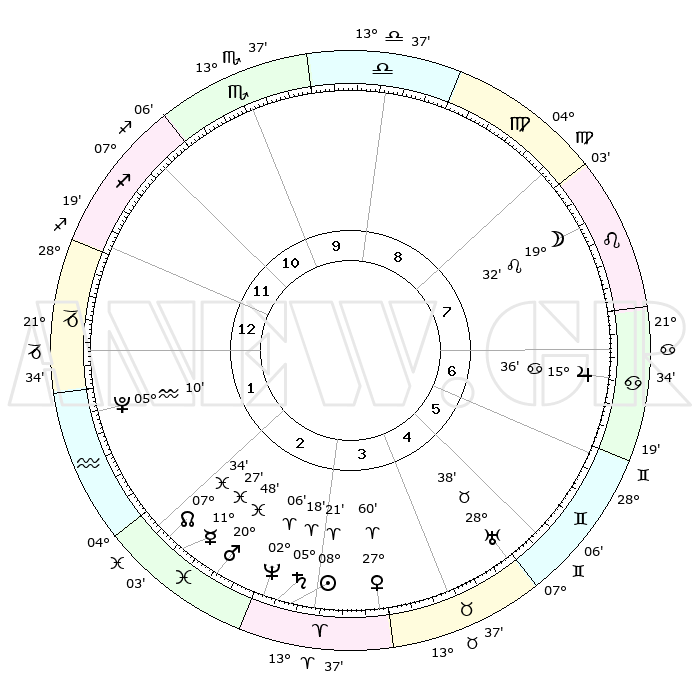 | | ΘΕΣΕΙΣ ΠΛΑΝΗΤΩΝ ΑΣΤΡΟΛΟΓΙΚΟΥ ΧΑΡΤΗ ΤΗΣ ΣΤΙΓΜΗΣ ΑΥΤΗΣ | | | | Πλανήτης | Ζώδιο | Μοίρες | Δεκαήμ. | Σε οίκο | Απόκλιση | | Ακμές των οίκων | | Ηλιος | Κριός | 08°17' | Πρώτο | 3 | 03 N 17 | | 1ος | 27°49' | Τοξότης | | Σελήνη | Λέων | 18°38' | Δεύτερο | 8 | 16 N 57 | | 2ος | 04°25' | Υδροχόος | | Ερμής | Ιχθείς | 11°24' | Δεύτερο | 2 | 08 S 01 | | 3ος | 14°15' | Ιχθείς | | Αφροδίτη | Κριός | 27°55' | Τρίτο | 4 | 10 N 12 | | 4ος | 18°31' | Κριός | | Αρης | Ιχθείς | 20°45' | Τρίτο | 3 | 04 S 38 | | 5ος | 15°11' | Ταύρος | | Δίας | Καρκίνος | 15°36' | Δεύτερο | 7 | 22 N 53 | | 6ος | 07°09' | Δίδυμοι | | Κρόνος | Κριός | 05°17' | Πρώτο | 3 | 00 N 09 | | 7ος | 27°49' | Δίδυμοι | | Ουρανός | Ταύρος | 28°38' | Τρίτο | 5 | 19 N 41 | | 8ος | 04°25' | Λέων | | Ποσειδώνας | Κριός | 02°06' | Πρώτο | 3 | 00 S 22 | | 9ος | 14°15' | Παρθένος | | Πλούτωνας | Υδροχόος | 05°10' | Πρώτο | 2 | 22 S 48 | | 10ος | 18°31' | Ζυγός | | Β. Δεσμός | Ιχθείς | 07°34' | Πρώτο | 2 | 08 S 44 | | 11ος | 15°11' | Σκορπιός | | Ωροσκόπος | Τοξότης | 27°49' | Τρίτο | | | 12ος | 07°09' | Τοξότης | | Μεσουράνημα | Ζυγός | 18°31' | Δεύτερο | | | |