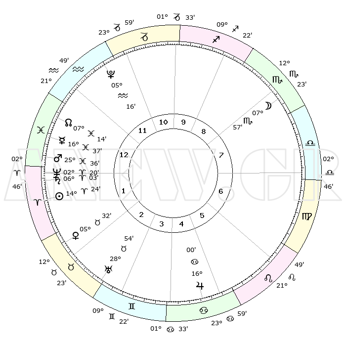 | | ΘΕΣΕΙΣ ΠΛΑΝΗΤΩΝ ΑΣΤΡΟΛΟΓΙΚΟΥ ΧΑΡΤΗ ΤΗΣ ΣΤΙΓΜΗΣ ΑΥΤΗΣ | | | | Πλανήτης | Ζώδιο | Μοίρες | Δεκαήμ. | Σε οίκο | Απόκλιση | | Ακμές των οίκων | | Ηλιος | Κριός | 14°20' | Δεύτερο | 2 | 05 N 39 | | 1ος | 26°23' | Υδροχόος | | Σελήνη | Σκορπιός | 07°10' | Πρώτο | 8 | 18 S 04 | | 2ος | 12°03' | Κριός | | Ερμής | Ιχθείς | 16°34' | Δεύτερο | 1 | 06 S 55 | | 3ος | 15°29' | Ταύρος | | Αφροδίτη | Ταύρος | 05°27' | Πρώτο | 2 | 13 N 02 | | 4ος | 10°15' | Δίδυμοι | | Αρης | Ιχθείς | 25°33' | Τρίτο | 1 | 02 S 43 | | 5ος | 01°58' | Καρκίνος | | Δίας | Καρκίνος | 15°60' | Δεύτερο | 5 | 22 N 51 | | 6ος | 25°10' | Καρκίνος | | Κρόνος | Κριός | 06°03' | Πρώτο | 1 | 00 N 27 | | 7ος | 26°23' | Λέων | | Ουρανός | Ταύρος | 28°54' | Τρίτο | 3 | 19 N 45 | | 8ος | 12°03' | Ζυγός | | Ποσειδώνας | Κριός | 02°20' | Πρώτο | 1 | 00 S 17 | | 9ος | 15°28' | Σκορπιός | | Πλούτωνας | Υδροχόος | 05°16' | Πρώτο | 12 | 22 S 47 | | 10ος | 10°15' | Τοξότης | | Β. Δεσμός | Ιχθείς | 07°14' | Πρώτο | 1 | 08 S 51 | | 11ος | 01°58' | Αιγόκερως | | Ωροσκόπος | Υδροχόος | 26°23' | Τρίτο | | | 12ος | 25°10' | Αιγόκερως | | Μεσουράνημα | Τοξότης | 10°15' | Δεύτερο | | | |