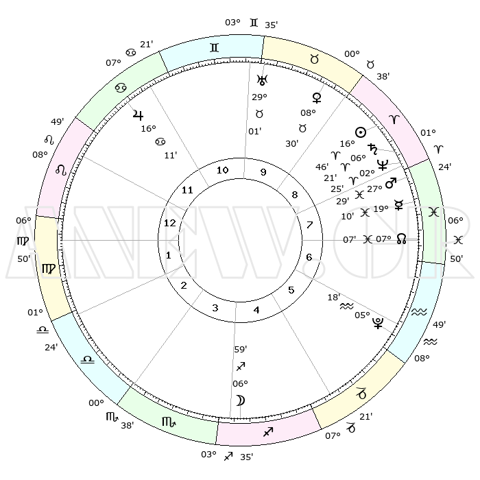 | | ΘΕΣΕΙΣ ΠΛΑΝΗΤΩΝ ΑΣΤΡΟΛΟΓΙΚΟΥ ΧΑΡΤΗ ΤΗΣ ΣΤΙΓΜΗΣ ΑΥΤΗΣ | | | | Πλανήτης | Ζώδιο | Μοίρες | Δεκαήμ. | Σε οίκο | Απόκλιση | | Ακμές των οίκων | | Ηλιος | Κριός | 16°42' | Δεύτερο | 9 | 06 N 34 | | 1ος | 18°52' | Λέων | | Σελήνη | Τοξότης | 06°15' | Πρώτο | 4 | 26 S 26 | | 2ος | 11°33' | Παρθένος | | Ερμής | Ιχθείς | 19°06' | Δεύτερο | 8 | 06 S 10 | | 3ος | 09°04' | Ζυγός | | Αφροδίτη | Ταύρος | 08°25' | Πρώτο | 9 | 14 N 06 | | 4ος | 11°41' | Σκορπιός | | Αρης | Ιχθείς | 27°26' | Τρίτο | 8 | 01 S 58 | | 5ος | 16°41' | Τοξότης | | Δίας | Καρκίνος | 16°11' | Δεύτερο | 11 | 22 N 49 | | 6ος | 19°42' | Αιγόκερως | | Κρόνος | Κριός | 06°21' | Πρώτο | 8 | 00 N 33 | | 7ος | 18°52' | Υδροχόος | | Ουρανός | Ταύρος | 29°01' | Τρίτο | 10 | 19 N 46 | | 8ος | 11°33' | Ιχθείς | | Ποσειδώνας | Κριός | 02°25' | Πρώτο | 8 | 00 S 14 | | 9ος | 09°04' | Κριός | | Πλούτωνας | Υδροχόος | 05°18' | Πρώτο | 6 | 22 S 47 | | 10ος | 11°41' | Ταύρος | | Β. Δεσμός | Ιχθείς | 07°07' | Πρώτο | 7 | 08 S 54 | | 11ος | 16°41' | Δίδυμοι | | Ωροσκόπος | Λέων | 18°52' | Δεύτερο | | | 12ος | 19°42' | Καρκίνος | | Μεσουράνημα | Ταύρος | 11°41' | Δεύτερο | | | |