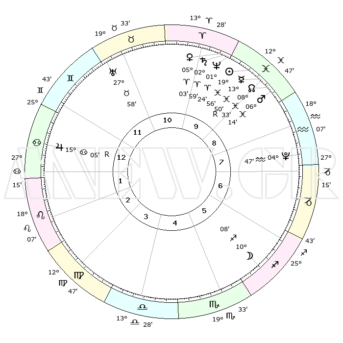 | | ΘΕΣΕΙΣ ΠΛΑΝΗΤΩΝ ΑΣΤΡΟΛΟΓΙΚΟΥ ΧΑΡΤΗ ΤΗΣ ΣΤΙΓΜΗΣ ΑΥΤΗΣ | | | | Πλανήτης | Ζώδιο | Μοίρες | Δεκαήμ. | Σε οίκο | Απόκλιση | | Ακμές των οίκων | | Ηλιος | Ιχθείς | 19°52' | Δεύτερο | 10 | 04 S 01 | | 1ος | 08°59' | Καρκίνος | | Σελήνη | Τοξότης | 09°25' | Πρώτο | 6 | 27 S 04 | | 2ος | 29°26' | Καρκίνος | | Ερμής | Ιχθείς | 13°54'R | Δεύτερο | 9 | 03 S 16 | | 3ος | 21°57' | Λέων | | Αφροδίτη | Κριός | 04°59' | Πρώτο | 10 | 00 N 54 | | 4ος | 19°45' | Παρθένος | | Αρης | Ιχθείς | 06°11' | Πρώτο | 9 | 10 S 15 | | 5ος | 24°55' | Ζυγός | | Δίας | Καρκίνος | 15°05'R | Δεύτερο | 1 | 22 N 56 | | 6ος | 03°60' | Τοξότης | | Κρόνος | Κριός | 02°59' | Πρώτο | 10 | 00 S 46 | | 7ος | 08°59' | Αιγόκερως | | Ουρανός | Ταύρος | 27°58' | Τρίτο | 11 | 19 N 32 | | 8ος | 29°26' | Αιγόκερως | | Ποσειδώνας | Κριός | 01°24' | Πρώτο | 10 | 00 S 39 | | 9ος | 21°57' | Υδροχόος | | Πλούτωνας | Υδροχόος | 04°47' | Πρώτο | 8 | 22 S 50 | | 10ος | 19°45' | Ιχθείς | | Β. Δεσμός | Ιχθείς | 08°33' | Πρώτο | 9 | 08 S 22 | | 11ος | 24°55' | Κριός | | Ωροσκόπος | Καρκίνος | 08°59' | Πρώτο | | | 12ος | 03°60' | Δίδυμοι | | Μεσουράνημα | Ιχθείς | 19°45' | Δεύτερο | | | |