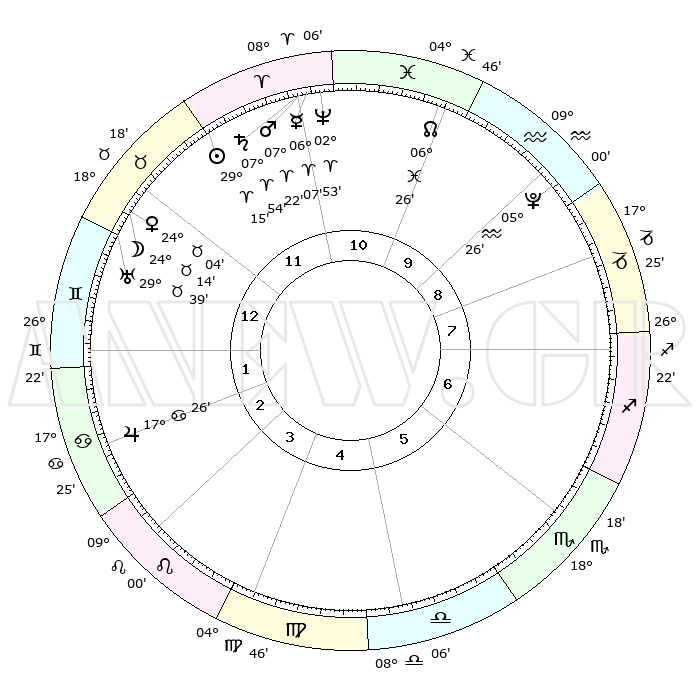 | | ΘΕΣΕΙΣ ΠΛΑΝΗΤΩΝ ΑΣΤΡΟΛΟΓΙΚΟΥ ΧΑΡΤΗ ΤΗΣ ΣΤΙΓΜΗΣ ΑΥΤΗΣ | | | | Πλανήτης | Ζώδιο | Μοίρες | Δεκαήμ. | Σε οίκο | Απόκλιση | | Ακμές των οίκων | | Ηλιος | Κριός | 29°11' | Τρίτο | 12 | 11 N 11 | | 1ος | 29°51' | Ταύρος | | Σελήνη | Ταύρος | 23°11' | Τρίτο | 12 | 23 N 20 | | 2ος | 24°41' | Δίδυμοι | | Ερμής | Κριός | 06°00' | Πρώτο | 11 | 00 S 02 | | 3ος | 16°07' | Καρκίνος | | Αφροδίτη | Ταύρος | 23°59' | Τρίτο | 12 | 19 N 07 | | 4ος | 08°52' | Λέων | | Αρης | Κριός | 07°19' | Πρώτο | 11 | 02 N 01 | | 5ος | 07°18' | Παρθένος | | Δίας | Καρκίνος | 17°25' | Δεύτερο | 3 | 22 N 41 | | 6ος | 15°43' | Ζυγός | | Κρόνος | Κριός | 07°54' | Πρώτο | 11 | 01 N 09 | | 7ος | 29°51' | Σκορπιός | | Ουρανός | Ταύρος | 29°38' | Τρίτο | 12 | 19 N 54 | | 8ος | 24°41' | Τοξότης | | Ποσειδώνας | Κριός | 02°52' | Πρώτο | 11 | 00 S 04 | | 9ος | 16°07' | Αιγόκερως | | Πλούτωνας | Υδροχόος | 05°26' | Πρώτο | 9 | 22 S 47 | | 10ος | 08°52' | Υδροχόος | | Β. Δεσμός | Ιχθείς | 06°26' | Πρώτο | 10 | 09 S 09 | | 11ος | 07°18' | Ιχθείς | | Ωροσκόπος | Ταύρος | 29°51' | Τρίτο | | | 12ος | 15°43' | Κριός | | Μεσουράνημα | Υδροχόος | 08°52' | Πρώτο | | | |