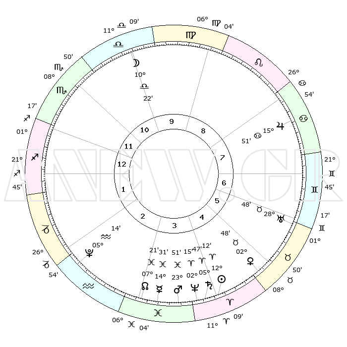 | | ΘΕΣΕΙΣ ΠΛΑΝΗΤΩΝ ΑΣΤΡΟΛΟΓΙΚΟΥ ΧΑΡΤΗ ΤΗΣ ΣΤΙΓΜΗΣ ΑΥΤΗΣ | | | | Πλανήτης | Ζώδιο | Μοίρες | Δεκαήμ. | Σε οίκο | Απόκλιση | | Ακμές των οίκων | | Ηλιος | Κριός | 12°08' | Δεύτερο | 4 | 04 N 48 | | 1ος | 02°12' | Τοξότης | | Σελήνη | Ζυγός | 09°33' | Πρώτο | 10 | 06 S 14 | | 2ος | 03°39' | Αιγόκερως | | Ερμής | Ιχθείς | 14°27' | Δεύτερο | 3 | 07 S 27 | | 3ος | 09°43' | Υδροχόος | | Αφροδίτη | Ταύρος | 02°43' | Πρώτο | 5 | 12 N 02 | | 4ος | 15°48' | Ιχθείς | | Αρης | Ιχθείς | 23°48' | Τρίτο | 4 | 03 S 25 | | 5ος | 16°33' | Κριός | | Δίας | Καρκίνος | 15°50' | Δεύτερο | 8 | 22 N 52 | | 6ος | 11°19' | Ταύρος | | Κρόνος | Κριός | 05°46' | Πρώτο | 4 | 00 N 20 | | 7ος | 02°12' | Δίδυμοι | | Ουρανός | Ταύρος | 28°48' | Τρίτο | 6 | 19 N 43 | | 8ος | 03°39' | Καρκίνος | | Ποσειδώνας | Κριός | 02°15' | Πρώτο | 4 | 00 S 19 | | 9ος | 09°43' | Λέων | | Πλούτωνας | Υδροχόος | 05°14' | Πρώτο | 2 | 22 S 47 | | 10ος | 15°48' | Παρθένος | | Β. Δεσμός | Ιχθείς | 07°21' | Πρώτο | 3 | 08 S 48 | | 11ος | 16°33' | Ζυγός | | Ωροσκόπος | Τοξότης | 02°12' | Πρώτο | | | 12ος | 11°19' | Σκορπιός | | Μεσουράνημα | Παρθένος | 15°48' | Δεύτερο | | | |