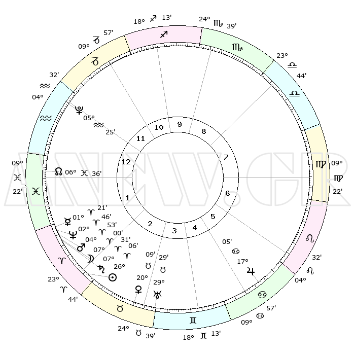 | | ΘΕΣΕΙΣ ΠΛΑΝΗΤΩΝ ΑΣΤΡΟΛΟΓΙΚΟΥ ΧΑΡΤΗ ΤΗΣ ΣΤΙΓΜΗΣ ΑΥΤΗΣ | | | | Πλανήτης | Ζώδιο | Μοίρες | Δεκαήμ. | Σε οίκο | Απόκλιση | | Ακμές των οίκων | | Ηλιος | Κριός | 26°03' | Τρίτο | 2 | 10 N 03 | | 1ος | 08°58' | Υδροχόος | | Σελήνη | Κριός | 06°10' | Πρώτο | 2 | 04 N 40 | | 2ος | 24°14' | Ιχθείς | | Ερμής | Κριός | 01°16' | Πρώτο | 2 | 01 S 54 | | 3ος | 01°08' | Ταύρος | | Αφροδίτη | Ταύρος | 20°05' | Τρίτο | 3 | 17 N 58 | | 4ος | 28°08' | Ταύρος | | Αρης | Κριός | 04°50' | Πρώτο | 2 | 01 N 01 | | 5ος | 20°21' | Δίδυμοι | | Δίας | Καρκίνος | 17°04' | Δεύτερο | 6 | 22 N 43 | | 6ος | 12°12' | Καρκίνος | | Κρόνος | Κριός | 07°30' | Πρώτο | 2 | 01 N 00 | | 7ος | 08°58' | Λέων | | Ουρανός | Ταύρος | 29°29' | Τρίτο | 4 | 19 N 52 | | 8ος | 24°14' | Παρθένος | | Ποσειδώνας | Κριός | 02°46' | Πρώτο | 2 | 00 S 06 | | 9ος | 01°08' | Σκορπιός | | Πλούτωνας | Υδροχόος | 05°25' | Πρώτο | 12 | 22 S 47 | | 10ος | 28°08' | Σκορπιός | | Β. Δεσμός | Ιχθείς | 06°36' | Πρώτο | 1 | 09 S 05 | | 11ος | 20°21' | Τοξότης | | Ωροσκόπος | Υδροχόος | 08°58' | Πρώτο | | | 12ος | 12°12' | Αιγόκερως | | Μεσουράνημα | Σκορπιός | 28°08' | Τρίτο | | | |