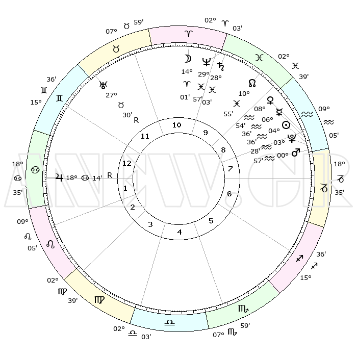 | | ΘΕΣΕΙΣ ΠΛΑΝΗΤΩΝ ΑΣΤΡΟΛΟΓΙΚΟΥ ΧΑΡΤΗ ΤΗΣ ΣΤΙΓΜΗΣ ΑΥΤΗΣ | | | | Πλανήτης | Ζώδιο | Μοίρες | Δεκαήμ. | Σε οίκο | Απόκλιση | | Ακμές των οίκων | | Ηλιος | Υδροχόος | 04°32' | Πρώτο | 8 | 19 S 07 | | 1ος | 28°12' | Δίδυμοι | | Σελήνη | Κριός | 13°08' | Δεύτερο | 11 | 07 N 51 | | 2ος | 19°07' | Καρκίνος | | Ερμής | Υδροχόος | 06°30' | Πρώτο | 8 | 20 S 40 | | 3ος | 10°48' | Λέων | | Αφροδίτη | Υδροχόος | 08°49' | Πρώτο | 8 | 19 S 14 | | 4ος | 06°50' | Παρθένος | | Αρης | Υδροχόος | 00°54' | Πρώτο | 8 | 20 S 56 | | 5ος | 10°29' | Ζυγός | | Δίας | Καρκίνος | 18°14'R | Δεύτερο | 1 | 22 N 29 | | 6ος | 20°36' | Σκορπιός | | Κρόνος | Ιχθείς | 28°03' | Τρίτο | 10 | 02 S 47 | | 7ος | 28°12' | Τοξότης | | Ουρανός | Ταύρος | 27°30'R | Τρίτο | 12 | 19 N 25 | | 8ος | 19°07' | Αιγόκερως | | Ποσειδώνας | Ιχθείς | 29°57' | Τρίτο | 10 | 01 S 14 | | 9ος | 10°48' | Υδροχόος | | Πλούτωνας | Υδροχόος | 03°28' | Πρώτο | 8 | 23 S 04 | | 10ος | 06°50' | Ιχθείς | | Β. Δεσμός | Ιχθείς | 10°55' | Δεύτερο | 10 | 07 S 28 | | 11ος | 10°29' | Κριός | | Ωροσκόπος | Δίδυμοι | 28°12' | Τρίτο | | | 12ος | 20°36' | Ταύρος | | Μεσουράνημα | Ιχθείς | 06°50' | Πρώτο | | | |