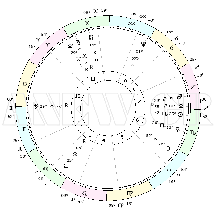 | | ΘΕΣΕΙΣ ΠΛΑΝΗΤΩΝ ΑΣΤΡΟΛΟΓΙΚΟΥ ΧΑΡΤΗ ΤΗΣ ΣΤΙΓΜΗΣ ΑΥΤΗΣ | | | | Πλανήτης | Ζώδιο | Μοίρες | Δεκαήμ. | Σε οίκο | Απόκλιση | | Ακμές των οίκων | | Ηλιος | Σκορπιός | 25°27' | Τρίτο | 8 | 19 S 07 | | 1ος | 17°54' | Κριός | | Σελήνη | Ζυγός | 25°51' | Τρίτο | 7 | 13 S 00 | | 2ος | 23°29' | Ταύρος | | Ερμής | Τοξότης | 02°01'R | Πρώτο | 8 | 20 S 58 | | 3ος | 18°25' | Δίδυμοι | | Αφροδίτη | Σκορπιός | 13°19' | Δεύτερο | 7 | 14 S 45 | | 4ος | 10°10' | Καρκίνος | | Αρης | Τοξότης | 09°25' | Πρώτο | 8 | 22 S 24 | | 5ος | 03°32' | Λέων | | Δίας | Καρκίνος | 25°06'R | Τρίτο | 4 | 21 N 14 | | 6ος | 03°56' | Παρθένος | | Κρόνος | Ιχθείς | 25°23'R | Τρίτο | 12 | 04 S 03 | | 7ος | 17°54' | Ζυγός | | Ουρανός | Ταύρος | 29°36'R | Τρίτο | 2 | 19 N 51 | | 8ος | 23°29' | Σκορπιός | | Ποσειδώνας | Ιχθείς | 29°31'R | Τρίτο | 12 | 01 S 26 | | 9ος | 18°25' | Τοξότης | | Πλούτωνας | Υδροχόος | 01°39' | Πρώτο | 10 | 23 S 28 | | 10ος | 10°10' | Αιγόκερως | | Β. Δεσμός | Ιχθείς | 14°31' | Δεύτερο | 12 | 06 S 06 | | 11ος | 03°32' | Υδροχόος | | Ωροσκόπος | Κριός | 17°54' | Δεύτερο | | | 12ος | 03°56' | Ιχθείς | | Μεσουράνημα | Αιγόκερως | 10°10' | Δεύτερο | | | |