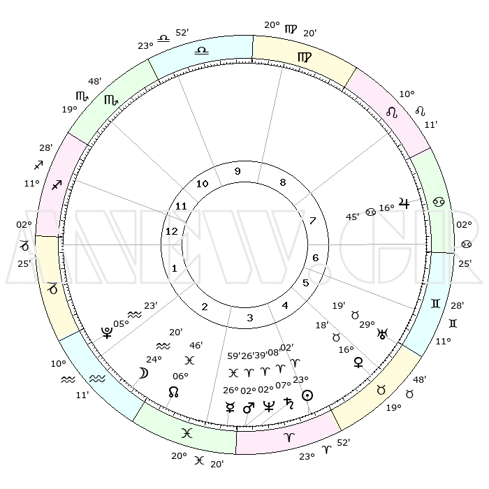 | | ΘΕΣΕΙΣ ΠΛΑΝΗΤΩΝ ΑΣΤΡΟΛΟΓΙΚΟΥ ΧΑΡΤΗ ΤΗΣ ΣΤΙΓΜΗΣ ΑΥΤΗΣ | | | | Πλανήτης | Ζώδιο | Μοίρες | Δεκαήμ. | Σε οίκο | Απόκλιση | | Ακμές των οίκων | | Ηλιος | Κριός | 22°58' | Τρίτο | 4 | 08 N 55 | | 1ος | 10°55' | Τοξότης | | Σελήνη | Υδροχόος | 23°27' | Τρίτο | 3 | 14 S 56 | | 2ος | 13°49' | Αιγόκερως | | Ερμής | Ιχθείς | 26°54' | Τρίτο | 3 | 03 S 32 | | 3ος | 21°21' | Υδροχόος | | Αφροδίτη | Ταύρος | 16°13' | Δεύτερο | 5 | 16 N 45 | | 4ος | 27°18' | Ιχθείς | | Αρης | Κριός | 02°23' | Πρώτο | 4 | 00 N 02 | | 5ος | 26°47' | Κριός | | Δίας | Καρκίνος | 16°45' | Δεύτερο | 8 | 22 N 46 | | 6ος | 20°24' | Ταύρος | | Κρόνος | Κριός | 07°08' | Πρώτο | 4 | 00 N 52 | | 7ος | 10°55' | Δίδυμοι | | Ουρανός | Ταύρος | 29°19' | Τρίτο | 6 | 19 N 50 | | 8ος | 13°49' | Καρκίνος | | Ποσειδώνας | Κριός | 02°39' | Πρώτο | 4 | 00 S 09 | | 9ος | 21°21' | Λέων | | Πλούτωνας | Υδροχόος | 05°23' | Πρώτο | 2 | 22 S 47 | | 10ος | 27°18' | Παρθένος | | Β. Δεσμός | Ιχθείς | 06°46' | Πρώτο | 3 | 09 S 01 | | 11ος | 26°47' | Ζυγός | | Ωροσκόπος | Τοξότης | 10°55' | Δεύτερο | | | 12ος | 20°24' | Σκορπιός | | Μεσουράνημα | Παρθένος | 27°18' | Τρίτο | | | |
