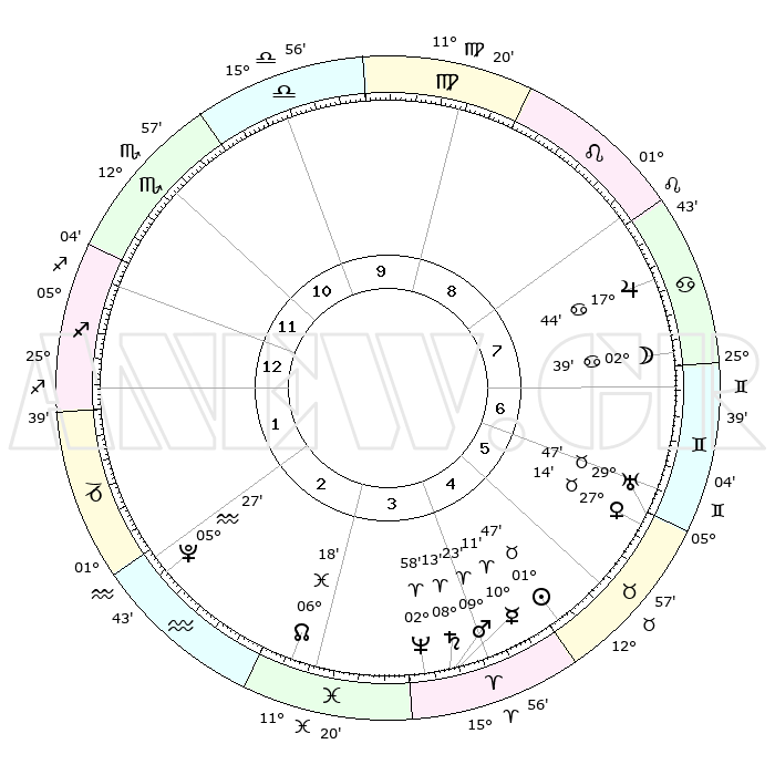 | | ΘΕΣΕΙΣ ΠΛΑΝΗΤΩΝ ΑΣΤΡΟΛΟΓΙΚΟΥ ΧΑΡΤΗ ΤΗΣ ΣΤΙΓΜΗΣ ΑΥΤΗΣ | | | | Πλανήτης | Ζώδιο | Μοίρες | Δεκαήμ. | Σε οίκο | Απόκλιση | | Ακμές των οίκων | | Ηλιος | Ταύρος | 01°43' | Πρώτο | 5 | 12 N 04 | | 1ος | 03°34' | Τοξότης | | Σελήνη | Καρκίνος | 01°36' | Πρώτο | 7 | 28 N 05 | | 2ος | 05°13' | Αιγόκερως | | Ερμής | Κριός | 10°04' | Δεύτερο | 4 | 01 N 37 | | 3ος | 11°31' | Υδροχόος | | Αφροδίτη | Ταύρος | 27°09' | Τρίτο | 6 | 19 N 59 | | 4ος | 17°36' | Ιχθείς | | Αρης | Κριός | 09°19' | Πρώτο | 4 | 02 N 49 | | 5ος | 18°10' | Κριός | | Δίας | Καρκίνος | 17°44' | Δεύτερο | 8 | 22 N 38 | | 6ος | 12°45' | Ταύρος | | Κρόνος | Κριός | 08°12' | Πρώτο | 4 | 01 N 16 | | 7ος | 03°34' | Δίδυμοι | | Ουρανός | Ταύρος | 29°47' | Τρίτο | 6 | 19 N 56 | | 8ος | 05°13' | Καρκίνος | | Ποσειδώνας | Κριός | 02°58' | Πρώτο | 4 | 00 S 02 | | 9ος | 11°31' | Λέων | | Πλούτωνας | Υδροχόος | 05°27' | Πρώτο | 2 | 22 S 48 | | 10ος | 17°36' | Παρθένος | | Β. Δεσμός | Ιχθείς | 06°18' | Πρώτο | 3 | 09 S 12 | | 11ος | 18°10' | Ζυγός | | Ωροσκόπος | Τοξότης | 03°34' | Πρώτο | | | 12ος | 12°45' | Σκορπιός | | Μεσουράνημα | Παρθένος | 17°36' | Δεύτερο | | | |