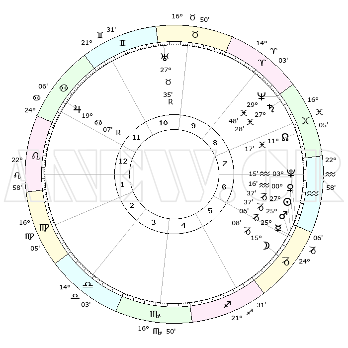 | | ΘΕΣΕΙΣ ΠΛΑΝΗΤΩΝ ΑΣΤΡΟΛΟΓΙΚΟΥ ΧΑΡΤΗ ΤΗΣ ΣΤΙΓΜΗΣ ΑΥΤΗΣ | | | | Πλανήτης | Ζώδιο | Μοίρες | Δεκαήμ. | Σε οίκο | Απόκλιση | | Ακμές των οίκων | | Ηλιος | Αιγόκερως | 27°33' | Τρίτο | 6 | 20 S 39 | | 1ος | 03°51' | Λέων | | Σελήνη | Αιγόκερως | 14°20' | Δεύτερο | 6 | 26 S 52 | | 2ος | 25°10' | Λέων | | Ερμής | Αιγόκερως | 24°60' | Τρίτο | 6 | 23 S 01 | | 3ος | 20°44' | Παρθένος | | Αφροδίτη | Υδροχόος | 00°11' | Πρώτο | 6 | 21 S 08 | | 4ος | 22°13' | Ζυγός | | Αρης | Αιγόκερως | 25°34' | Τρίτο | 6 | 21 S 59 | | 5ος | 28°09' | Σκορπιός | | Δίας | Καρκίνος | 19°07'R | Δεύτερο | 12 | 22 N 21 | | 6ος | 03°14' | Αιγόκερως | | Κρόνος | Ιχθείς | 27°28' | Τρίτο | 9 | 03 S 02 | | 7ος | 03°51' | Υδροχόος | | Ουρανός | Ταύρος | 27°35'R | Τρίτο | 10 | 19 N 26 | | 8ος | 25°10' | Υδροχόος | | Ποσειδώνας | Ιχθείς | 29°47' | Τρίτο | 9 | 01 S 18 | | 9ος | 20°44' | Ιχθείς | | Πλούτωνας | Υδροχόος | 03°15' | Πρώτο | 6 | 23 S 07 | | 10ος | 22°13' | Κριός | | Β. Δεσμός | Ιχθείς | 11°17' | Δεύτερο | 8 | 07 S 20 | | 11ος | 28°09' | Ταύρος | | Ωροσκόπος | Λέων | 03°51' | Πρώτο | | | 12ος | 03°13' | Καρκίνος | | Μεσουράνημα | Κριός | 22°13' | Τρίτο | | | |