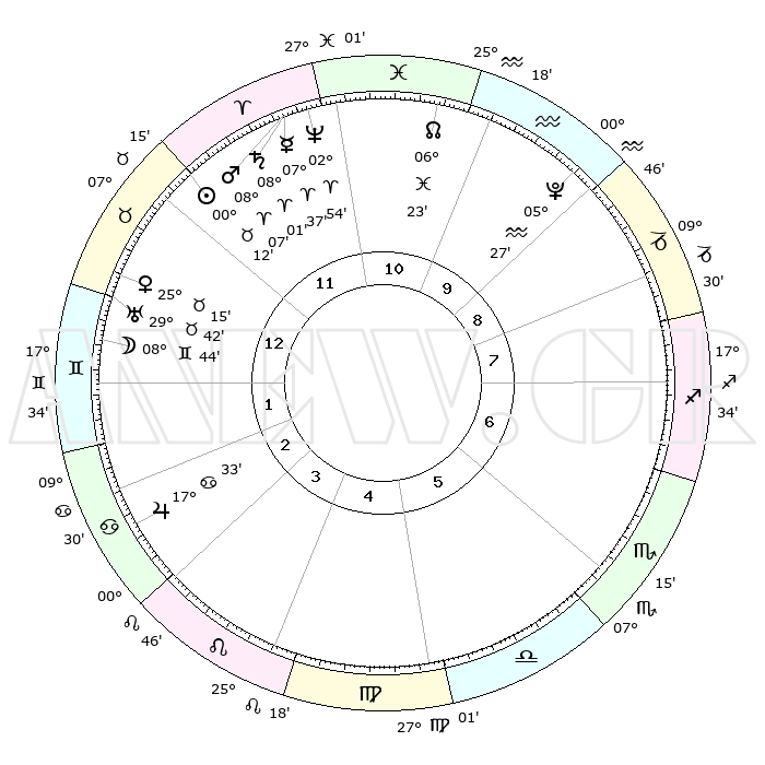 | | ΘΕΣΕΙΣ ΠΛΑΝΗΤΩΝ ΑΣΤΡΟΛΟΓΙΚΟΥ ΧΑΡΤΗ ΤΗΣ ΣΤΙΓΜΗΣ ΑΥΤΗΣ | | | | Πλανήτης | Ζώδιο | Μοίρες | Δεκαήμ. | Σε οίκο | Απόκλιση | | Ακμές των οίκων | | Ηλιος | Κριός | 29°50' | Τρίτο | 4 | 11 N 25 | | 1ος | 24°34' | Τοξότης | | Σελήνη | Δίδυμοι | 03°12' | Πρώτο | 5 | 25 N 47 | | 2ος | 00°22' | Υδροχόος | | Ερμής | Κριός | 07°02' | Πρώτο | 3 | 00 N 23 | | 3ος | 09°53' | Ιχθείς | | Αφροδίτη | Ταύρος | 24°48' | Τρίτο | 5 | 19 N 21 | | 4ος | 14°37' | Κριός | | Αρης | Κριός | 07°50' | Πρώτο | 3 | 02 N 14 | | 5ος | 11°49' | Ταύρος | | Δίας | Καρκίνος | 17°30' | Δεύτερο | 7 | 22 N 40 | | 6ος | 04°01' | Δίδυμοι | | Κρόνος | Κριός | 07°58' | Πρώτο | 3 | 01 N 11 | | 7ος | 24°34' | Δίδυμοι | | Ουρανός | Ταύρος | 29°41' | Τρίτο | 5 | 19 N 55 | | 8ος | 00°22' | Λέων | | Ποσειδώνας | Κριός | 02°54' | Πρώτο | 3 | 00 S 03 | | 9ος | 09°53' | Παρθένος | | Πλούτωνας | Υδροχόος | 05°27' | Πρώτο | 2 | 22 S 48 | | 10ος | 14°37' | Ζυγός | | Β. Δεσμός | Ιχθείς | 06°24' | Πρώτο | 2 | 09 S 10 | | 11ος | 11°49' | Σκορπιός | | Ωροσκόπος | Τοξότης | 24°34' | Τρίτο | | | 12ος | 04°01' | Τοξότης | | Μεσουράνημα | Ζυγός | 14°37' | Δεύτερο | | | |