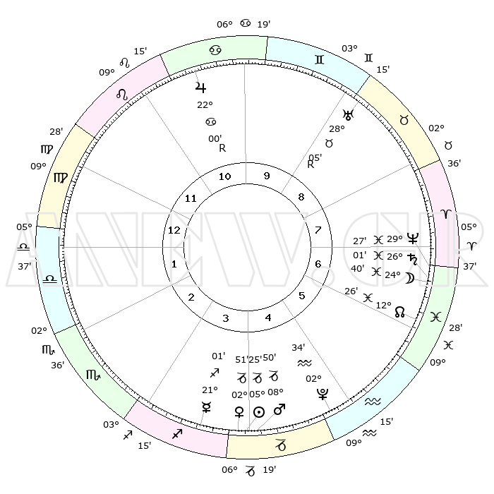 | | ΘΕΣΕΙΣ ΠΛΑΝΗΤΩΝ ΑΣΤΡΟΛΟΓΙΚΟΥ ΧΑΡΤΗ ΤΗΣ ΣΤΙΓΜΗΣ ΑΥΤΗΣ | | | | Πλανήτης | Ζώδιο | Μοίρες | Δεκαήμ. | Σε οίκο | Απόκλιση | | Ακμές των οίκων | | Ηλιος | Αιγόκερως | 05°20' | Πρώτο | 4 | 23 S 20 | | 1ος | 11°54' | Παρθένος | | Σελήνη | Ιχθείς | 23°36' | Τρίτο | 7 | 01 S 33 | | 2ος | 06°57' | Ζυγός | | Ερμής | Τοξότης | 20°54' | Τρίτο | 4 | 23 S 06 | | 3ος | 06°32' | Σκορπιός | | Αφροδίτη | Αιγόκερως | 02°45' | Πρώτο | 4 | 23 S 43 | | 4ος | 09°28' | Τοξότης | | Αρης | Αιγόκερως | 08°46' | Πρώτο | 4 | 24 S 00 | | 5ος | 12°58' | Αιγόκερως | | Δίας | Καρκίνος | 22°01'R | Τρίτο | 11 | 21 N 51 | | 6ος | 14°10' | Υδροχόος | | Κρόνος | Ιχθείς | 26°00' | Τρίτο | 7 | 03 S 41 | | 7ος | 11°54' | Ιχθείς | | Ουρανός | Ταύρος | 28°06'R | Τρίτο | 9 | 19 N 32 | | 8ος | 06°57' | Κριός | | Ποσειδώνας | Ιχθείς | 29°27' | Τρίτο | 7 | 01 S 27 | | 9ος | 06°32' | Ταύρος | | Πλούτωνας | Υδροχόος | 02°34' | Πρώτο | 5 | 23 S 15 | | 10ος | 09°28' | Δίδυμοι | | Β. Δεσμός | Ιχθείς | 12°27' | Δεύτερο | 7 | 06 S 53 | | 11ος | 12°58' | Καρκίνος | | Ωροσκόπος | Παρθένος | 11°54' | Δεύτερο | | | 12ος | 14°10' | Λέων | | Μεσουράνημα | Δίδυμοι | 09°28' | Πρώτο | | | |