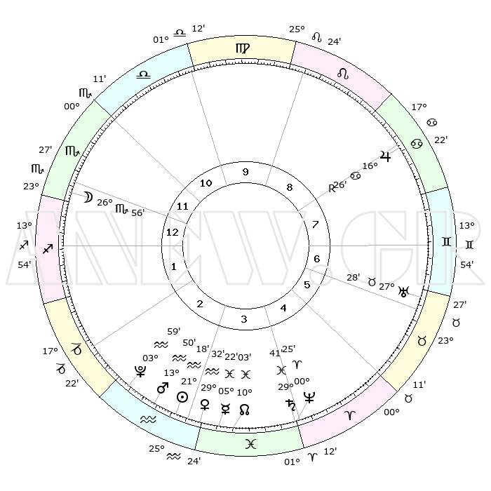 | | ΘΕΣΕΙΣ ΠΛΑΝΗΤΩΝ ΑΣΤΡΟΛΟΓΙΚΟΥ ΧΑΡΤΗ ΤΗΣ ΣΤΙΓΜΗΣ ΑΥΤΗΣ | | | | Πλανήτης | Ζώδιο | Μοίρες | Δεκαήμ. | Σε οίκο | Απόκλιση | | Ακμές των οίκων | | Ηλιος | Υδροχόος | 21°15' | Τρίτο | 3 | 14 S 25 | | 1ος | 27°14' | Σκορπιός | | Σελήνη | Σκορπιός | 26°16' | Τρίτο | 12 | 24 S 17 | | 2ος | 27°59' | Τοξότης | | Ερμής | Ιχθείς | 05°17' | Πρώτο | 3 | 10 S 25 | | 3ος | 03°14' | Υδροχόος | | Αφροδίτη | Υδροχόος | 29°28' | Τρίτο | 3 | 13 S 01 | | 4ος | 09°12' | Ιχθείς | | Αρης | Υδροχόος | 13°47' | Δεύτερο | 3 | 17 S 42 | | 5ος | 10°34' | Κριός | | Δίας | Καρκίνος | 16°27'R | Δεύτερο | 8 | 22 N 44 | | 6ος | 05°60' | Ταύρος | | Κρόνος | Ιχθείς | 29°41' | Τρίτο | 4 | 02 S 06 | | 7ος | 27°14' | Ταύρος | | Ουρανός | Ταύρος | 27°28' | Τρίτο | 7 | 19 N 25 | | 8ος | 27°59' | Δίδυμοι | | Ποσειδώνας | Κριός | 00°24' | Πρώτο | 4 | 01 S 02 | | 9ος | 03°14' | Λέων | | Πλούτωνας | Υδροχόος | 03°59' | Πρώτο | 3 | 22 S 58 | | 10ος | 09°12' | Παρθένος | | Β. Δεσμός | Ιχθείς | 10°03' | Δεύτερο | 4 | 07 S 48 | | 11ος | 10°34' | Ζυγός | | Ωροσκόπος | Σκορπιός | 27°14' | Τρίτο | | | 12ος | 05°60' | Σκορπιός | | Μεσουράνημα | Παρθένος | 09°12' | Πρώτο | | | |