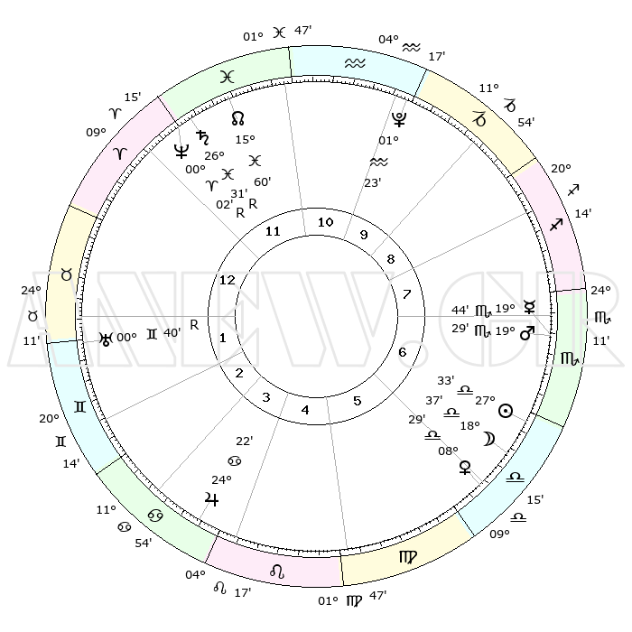 | ΘΕΣΕΙΣ ΠΛΑΝΗΤΩΝ ΑΣΤΡΟΛΟΓΙΚΟΥ ΧΑΡΤΗ ΤΗΣ ΣΤΙΓΜΗΣ ΑΥΤΗΣ | | Πλανήτης | Ζώδιο | Μοίρες | Δεκαήμ. | Σε οίκο | Απόκλιση | | Ακμές των οίκων | Ηλιος | Ζυγός | 27°26' | Τρίτο | 7 | 10 S 33 | | 1ος | 19°49' | Ιχθείς | Σελήνη | Ζυγός | 17°11' | Δεύτερο | 7 | 09 S 05 | | 2ος | 02°22' | Ταύρος | Ερμής | Σκορπιός | 19°35' | Δεύτερο | 8 | 19 S 49 | | 3ος | 01°25' | Δίδυμοι | Αφροδίτη | Ζυγός | 08°20' | Πρώτο | 7 | 01 S 54 | | 4ος | 24°16' | Δίδυμοι | Αρης | Σκορπιός | 19°24' | Δεύτερο | 8 | 17 S 51 | | 5ος | 16°12' | Καρκίνος | Δίας | Καρκίνος | 24°22' | Τρίτο | 5 | 21 N 18 | | 6ος | 12°07' | Λέων | Κρόνος | Ιχθείς | 26°32'R | Τρίτο | 1 | 03 S 40 | | 7ος | 19°49' | Παρθένος | Ουρανός | Δίδυμοι | 00°41'R | Πρώτο | 2 | 20 N 05 | | 8ος | 02°22' | Σκορπιός | Ποσειδώνας | Κριός | 00°02'R | Πρώτο | 1 | 01 S 15 | | 9ος | 01°25' | Τοξότης | Πλούτωνας | Υδροχόος | 01°23' | Πρώτο | 11 | 23 S 32 | | 10ος | 24°16' | Τοξότης | Β. Δεσμός | Ιχθείς | 16°00' | Δεύτερο | 12 | 05 S 31 | | 11ος | 16°12' | Αιγόκερως | Ωροσκόπος | Ιχθείς | 19°49' | Δεύτερο | | | 12ος | 12°07' | Υδροχόος | Μεσουράνημα | Τοξότης | 24°16' | Τρίτο | | | |