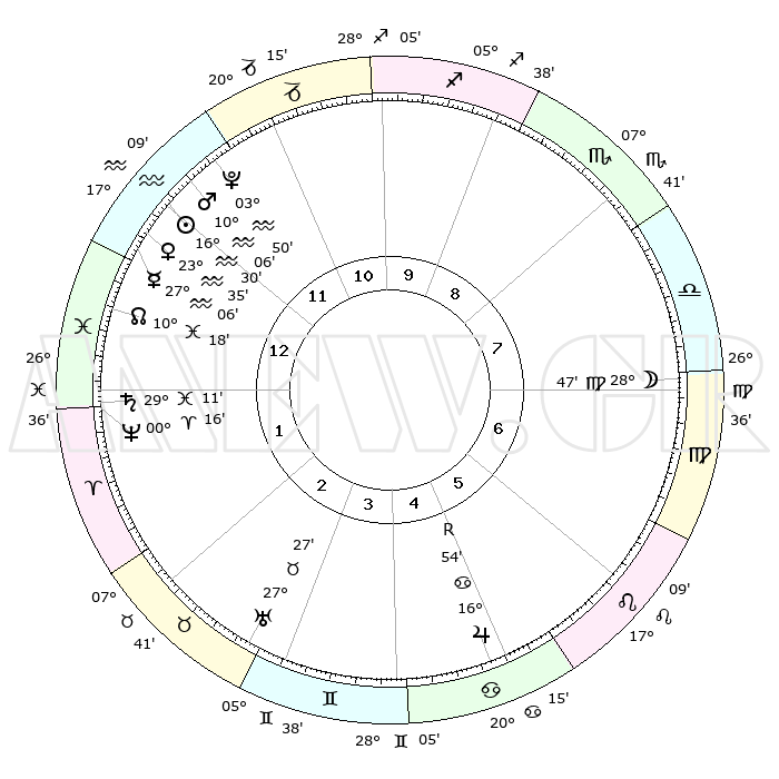 | | ΘΕΣΕΙΣ ΠΛΑΝΗΤΩΝ ΑΣΤΡΟΛΟΓΙΚΟΥ ΧΑΡΤΗ ΤΗΣ ΣΤΙΓΜΗΣ ΑΥΤΗΣ | | | | Πλανήτης | Ζώδιο | Μοίρες | Δεκαήμ. | Σε οίκο | Απόκλιση | | Ακμές των οίκων | | Ηλιος | Υδροχόος | 16°26' | Δεύτερο | 12 | 15 S 54 | | 1ος | 23°50' | Υδροχόος | | Σελήνη | Παρθένος | 28°02' | Τρίτο | 7 | 00 S 47 | | 2ος | 09°35' | Κριός | | Ερμής | Υδροχόος | 27°00' | Τρίτο | 1 | 13 S 57 | | 3ος | 13°32' | Ταύρος | | Αφροδίτη | Υδροχόος | 23°31' | Τρίτο | 12 | 15 S 01 | | 4ος | 08°35' | Δίδυμοι | | Αρης | Υδροχόος | 10°04' | Δεύτερο | 12 | 18 S 44 | | 5ος | 00°20' | Καρκίνος | | Δίας | Καρκίνος | 16°54'R | Δεύτερο | 5 | 22 N 40 | | 6ος | 23°18' | Καρκίνος | | Κρόνος | Ιχθείς | 29°11' | Τρίτο | 1 | 02 S 19 | | 7ος | 23°50' | Λέων | | Ουρανός | Ταύρος | 27°27' | Τρίτο | 3 | 19 N 24 | | 8ος | 09°35' | Ζυγός | | Ποσειδώνας | Κριός | 00°16' | Πρώτο | 1 | 01 S 06 | | 9ος | 13°32' | Σκορπιός | | Πλούτωνας | Υδροχόος | 03°50' | Πρώτο | 12 | 23 S 00 | | 10ος | 08°35' | Τοξότης | | Β. Δεσμός | Ιχθείς | 10°18' | Δεύτερο | 1 | 07 S 42 | | 11ος | 00°20' | Αιγόκερως | | Ωροσκόπος | Υδροχόος | 23°50' | Τρίτο | | | 12ος | 23°18' | Αιγόκερως | | Μεσουράνημα | Τοξότης | 08°35' | Πρώτο | | | |
