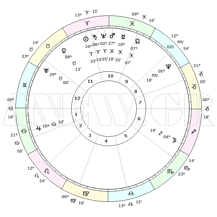 | | ΘΕΣΕΙΣ ΠΛΑΝΗΤΩΝ ΑΣΤΡΟΛΟΓΙΚΟΥ ΧΑΡΤΗ ΤΗΣ ΣΤΙΓΜΗΣ ΑΥΤΗΣ | | | | Πλανήτης | Ζώδιο | Μοίρες | Δεκαήμ. | Σε οίκο | Απόκλιση | | Ακμές των οίκων | | Ηλιος | Κριός | 16°29' | Δεύτερο | 11 | 06 N 29 | | 1ος | 05°35' | Δίδυμοι | | Σελήνη | Τοξότης | 03°30' | Πρώτο | 6 | 25 S 54 | | 2ος | 29°20' | Δίδυμοι | | Ερμής | Ιχθείς | 18°51' | Δεύτερο | 11 | 06 S 15 | | 3ος | 20°36' | Καρκίνος | | Αφροδίτη | Ταύρος | 08°08' | Πρώτο | 12 | 14 N 00 | | 4ος | 13°49' | Λέων | | Αρης | Ιχθείς | 27°15' | Τρίτο | 11 | 02 S 02 | | 5ος | 13°16' | Παρθένος | | Δίας | Καρκίνος | 16°10' | Δεύτερο | 2 | 22 N 50 | | 6ος | 22°30' | Ζυγός | | Κρόνος | Κριός | 06°19' | Πρώτο | 11 | 00 N 33 | | 7ος | 05°35' | Τοξότης | | Ουρανός | Ταύρος | 29°00' | Τρίτο | 12 | 19 N 46 | | 8ος | 29°20' | Τοξότης | | Ποσειδώνας | Κριός | 02°24' | Πρώτο | 11 | 00 S 15 | | 9ος | 20°36' | Αιγόκερως | | Πλούτωνας | Υδροχόος | 05°18' | Πρώτο | 9 | 22 S 47 | | 10ος | 13°49' | Υδροχόος | | Β. Δεσμός | Ιχθείς | 07°07' | Πρώτο | 10 | 08 S 54 | | 11ος | 13°16' | Ιχθείς | | Ωροσκόπος | Δίδυμοι | 05°35' | Πρώτο | | | 12ος | 22°30' | Κριός | | Μεσουράνημα | Υδροχόος | 13°49' | Δεύτερο | | | |