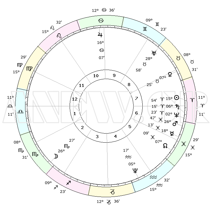 | | ΘΕΣΕΙΣ ΠΛΑΝΗΤΩΝ ΑΣΤΡΟΛΟΓΙΚΟΥ ΧΑΡΤΗ ΤΗΣ ΣΤΙΓΜΗΣ ΑΥΤΗΣ | | | | Πλανήτης | Ζώδιο | Μοίρες | Δεκαήμ. | Σε οίκο | Απόκλιση | | Ακμές των οίκων | | Ηλιος | Κριός | 15°45' | Δεύτερο | 8 | 06 N 12 | | 1ος | 24°31' | Λέων | | Σελήνη | Σκορπιός | 24°33' | Τρίτο | 4 | 23 S 46 | | 2ος | 17°48' | Παρθένος | | Ερμής | Ιχθείς | 18°02' | Δεύτερο | 8 | 06 S 29 | | 3ος | 15°56' | Ζυγός | | Αφροδίτη | Ταύρος | 07°13' | Πρώτο | 9 | 13 N 41 | | 4ος | 18°45' | Σκορπιός | | Αρης | Ιχθείς | 26°40' | Τρίτο | 8 | 02 S 16 | | 5ος | 23°19' | Τοξότης | | Δίας | Καρκίνος | 16°06' | Δεύτερο | 11 | 22 N 50 | | 6ος | 25°45' | Αιγόκερως | | Κρόνος | Κριός | 06°13' | Πρώτο | 8 | 00 N 31 | | 7ος | 24°31' | Υδροχόος | | Ουρανός | Ταύρος | 28°58' | Τρίτο | 10 | 19 N 45 | | 8ος | 17°48' | Ιχθείς | | Ποσειδώνας | Κριός | 02°23' | Πρώτο | 8 | 00 S 15 | | 9ος | 15°56' | Κριός | | Πλούτωνας | Υδροχόος | 05°17' | Πρώτο | 6 | 22 S 47 | | 10ος | 18°45' | Ταύρος | | Β. Δεσμός | Ιχθείς | 07°10' | Πρώτο | 7 | 08 S 53 | | 11ος | 23°20' | Δίδυμοι | | Ωροσκόπος | Λέων | 24°31' | Τρίτο | | | 12ος | 25°45' | Καρκίνος | | Μεσουράνημα | Ταύρος | 18°45' | Δεύτερο | | | |