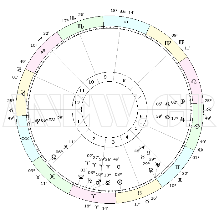 | | ΘΕΣΕΙΣ ΠΛΑΝΗΤΩΝ ΑΣΤΡΟΛΟΓΙΚΟΥ ΧΑΡΤΗ ΤΗΣ ΣΤΙΓΜΗΣ ΑΥΤΗΣ | | | | Πλανήτης | Ζώδιο | Μοίρες | Δεκαήμ. | Σε οίκο | Απόκλιση | | Ακμές των οίκων | | Ηλιος | Ταύρος | 03°45' | Πρώτο | 4 | 12 N 46 | | 1ος | 01°04' | Αιγόκερως | | Σελήνη | Λέων | 01°09' | Πρώτο | 7 | 22 N 51 | | 2ος | 08°30' | Υδροχόος | | Ερμής | Κριός | 13°28' | Δεύτερο | 3 | 03 N 01 | | 3ος | 18°34' | Ιχθείς | | Αφροδίτη | Ταύρος | 29°41' | Τρίτο | 5 | 20 N 39 | | 4ος | 22°20' | Κριός | | Αρης | Κριός | 10°56' | Δεύτερο | 3 | 03 N 28 | | 5ος | 18°29' | Ταύρος | | Δίας | Καρκίνος | 17°59' | Δεύτερο | 7 | 22 N 36 | | 6ος | 10°13' | Δίδυμοι | | Κρόνος | Κριός | 08°27' | Πρώτο | 3 | 01 N 22 | | 7ος | 01°05' | Καρκίνος | | Ουρανός | Ταύρος | 29°53' | Τρίτο | 5 | 19 N 58 | | 8ος | 08°30' | Λέων | | Ποσειδώνας | Κριός | 03°02' | Πρώτο | 3 | 00 S 00 | | 9ος | 18°34' | Παρθένος | | Πλούτωνας | Υδροχόος | 05°28' | Πρώτο | 1 | 22 S 48 | | 10ος | 22°20' | Ζυγός | | Β. Δεσμός | Ιχθείς | 06°11' | Πρώτο | 2 | 09 S 14 | | 11ος | 18°29' | Σκορπιός | | Ωροσκόπος | Αιγόκερως | 01°04' | Πρώτο | | | 12ος | 10°13' | Τοξότης | | Μεσουράνημα | Ζυγός | 22°20' | Τρίτο | | | |