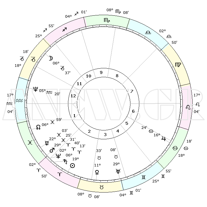 | | ΘΕΣΕΙΣ ΠΛΑΝΗΤΩΝ ΑΣΤΡΟΛΟΓΙΚΟΥ ΧΑΡΤΗ ΤΗΣ ΣΤΙΓΜΗΣ ΑΥΤΗΣ | | | | Πλανήτης | Ζώδιο | Μοίρες | Δεκαήμ. | Σε οίκο | Απόκλιση | | Ακμές των οίκων | | Ηλιος | Κριός | 19°09' | Δεύτερο | 3 | 07 N 30 | | 1ος | 18°24' | Αιγόκερως | | Σελήνη | Αιγόκερως | 05°50' | Πρώτο | 12 | 27 S 53 | | 2ος | 00°10' | Ιχθείς | | Ερμής | Ιχθείς | 21°58' | Τρίτο | 2 | 05 S 15 | | 3ος | 10°03' | Κριός | | Αφροδίτη | Ταύρος | 11°28' | Δεύτερο | 4 | 15 N 10 | | 4ος | 10°38' | Ταύρος | | Αρης | Ιχθείς | 29°22' | Τρίτο | 2 | 01 S 11 | | 5ος | 04°27' | Δίδυμοι | | Δίας | Καρκίνος | 16°24' | Δεύτερο | 6 | 22 N 48 | | 6ος | 25°39' | Δίδυμοι | | Κρόνος | Κριός | 06°39' | Πρώτο | 2 | 00 N 41 | | 7ος | 18°24' | Καρκίνος | | Ουρανός | Ταύρος | 29°08' | Τρίτο | 4 | 19 N 48 | | 8ος | 00°10' | Παρθένος | | Ποσειδώνας | Κριός | 02°30' | Πρώτο | 2 | 00 S 12 | | 9ος | 10°03' | Ζυγός | | Πλούτωνας | Υδροχόος | 05°20' | Πρώτο | 1 | 22 S 47 | | 10ος | 10°38' | Σκορπιός | | Β. Δεσμός | Ιχθείς | 06°59' | Πρώτο | 2 | 08 S 57 | | 11ος | 04°27' | Τοξότης | | Ωροσκόπος | Αιγόκερως | 18°24' | Δεύτερο | | | 12ος | 25°39' | Τοξότης | | Μεσουράνημα | Σκορπιός | 10°38' | Δεύτερο | | | |