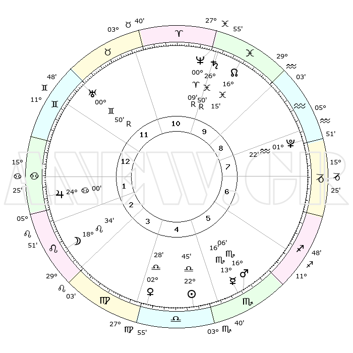 | ΘΕΣΕΙΣ ΠΛΑΝΗΤΩΝ ΑΣΤΡΟΛΟΓΙΚΟΥ ΧΑΡΤΗ ΤΗΣ ΣΤΙΓΜΗΣ ΑΥΤΗΣ | | Πλανήτης | Ζώδιο | Μοίρες | Δεκαήμ. | Σε οίκο | Απόκλιση | | Ακμές των οίκων | Ηλιος | Ζυγός | 22°38' | Τρίτο | 5 | 08 S 48 | | 1ος | 06°39' | Δίδυμοι | Σελήνη | Λέων | 17°06' | Δεύτερο | 4 | 18 N 15 | | 2ος | 00°12' | Καρκίνος | Ερμής | Σκορπιός | 13°06' | Δεύτερο | 6 | 17 S 30 | | 3ος | 21°27' | Καρκίνος | Αφροδίτη | Ζυγός | 02°19' | Πρώτο | 5 | 00 N 28 | | 4ος | 14°46' | Λέων | Αρης | Σκορπιός | 16°02' | Δεύτερο | 6 | 16 S 51 | | 5ος | 14°25' | Παρθένος | Δίας | Καρκίνος | 23°60' | Τρίτο | 3 | 21 N 21 | | 6ος | 23°47' | Ζυγός | Κρόνος | Ιχθείς | 26°50'R | Τρίτο | 11 | 03 S 33 | | 7ος | 06°39' | Τοξότης | Ουρανός | Δίδυμοι | 00°50'R | Πρώτο | 12 | 20 N 07 | | 8ος | 00°12' | Αιγόκερως | Ποσειδώνας | Κριός | 00°09'R | Πρώτο | 11 | 01 S 12 | | 9ος | 21°27' | Αιγόκερως | Πλούτωνας | Υδροχόος | 01°22' | Πρώτο | 9 | 23 S 32 | | 10ος | 14°46' | Υδροχόος | Β. Δεσμός | Ιχθείς | 16°16' | Δεύτερο | 11 | 05 S 25 | | 11ος | 14°25' | Ιχθείς | Ωροσκόπος | Δίδυμοι | 06°39' | Πρώτο | | | 12ος | 23°47' | Κριός | Μεσουράνημα | Υδροχόος | 14°46' | Δεύτερο | | | |
