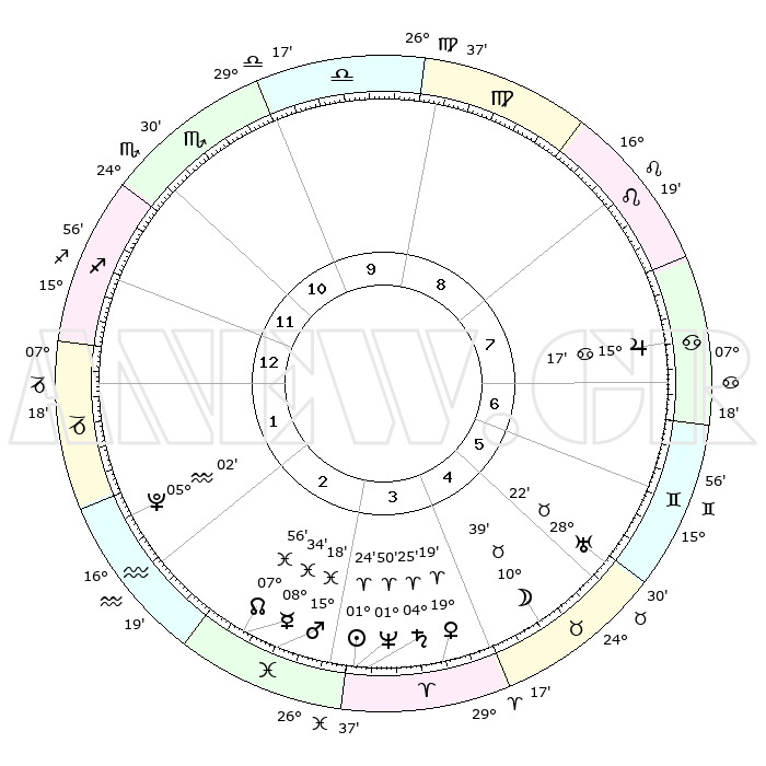 | | ΘΕΣΕΙΣ ΠΛΑΝΗΤΩΝ ΑΣΤΡΟΛΟΓΙΚΟΥ ΧΑΡΤΗ ΤΗΣ ΣΤΙΓΜΗΣ ΑΥΤΗΣ | | | | Πλανήτης | Ζώδιο | Μοίρες | Δεκαήμ. | Σε οίκο | Απόκλιση | | Ακμές των οίκων | | Ηλιος | Κριός | 01°20' | Πρώτο | 3 | 00 N 32 | | 1ος | 15°39' | Τοξότης | | Σελήνη | Ταύρος | 09°41' | Πρώτο | 5 | 19 N 03 | | 2ος | 19°29' | Αιγόκερως | | Ερμής | Ιχθείς | 08°33' | Πρώτο | 3 | 07 S 42 | | 3ος | 27°47' | Υδροχόος | | Αφροδίτη | Κριός | 19°14' | Δεύτερο | 4 | 06 N 46 | | 4ος | 03°27' | Κριός | | Αρης | Ιχθείς | 15°15' | Δεύτερο | 3 | 06 S 48 | | 5ος | 02°09' | Ταύρος | | Δίας | Καρκίνος | 15°17' | Δεύτερο | 7 | 22 N 55 | | 6ος | 25°14' | Ταύρος | | Κρόνος | Κριός | 04°24' | Πρώτο | 4 | 00 S 12 | | 7ος | 15°39' | Δίδυμοι | | Ουρανός | Ταύρος | 28°21' | Τρίτο | 6 | 19 N 37 | | 8ος | 19°29' | Καρκίνος | | Ποσειδώνας | Κριός | 01°50' | Πρώτο | 3 | 00 S 28 | | 9ος | 27°47' | Λέων | | Πλούτωνας | Υδροχόος | 05°02' | Πρώτο | 2 | 22 S 48 | | 10ος | 03°27' | Ζυγός | | Β. Δεσμός | Ιχθείς | 07°56' | Πρώτο | 3 | 08 S 35 | | 11ος | 02°09' | Σκορπιός | | Ωροσκόπος | Τοξότης | 15°39' | Δεύτερο | | | 12ος | 25°14' | Σκορπιός | | Μεσουράνημα | Ζυγός | 03°27' | Πρώτο | | | |
