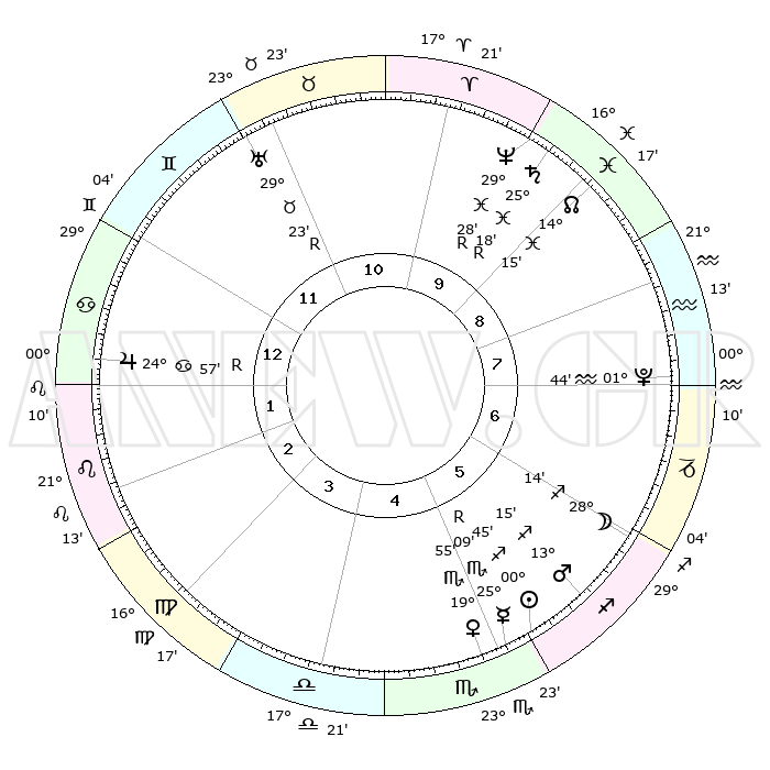 | | ΘΕΣΕΙΣ ΠΛΑΝΗΤΩΝ ΑΣΤΡΟΛΟΓΙΚΟΥ ΧΑΡΤΗ ΤΗΣ ΣΤΙΓΜΗΣ ΑΥΤΗΣ | | | | Πλανήτης | Ζώδιο | Μοίρες | Δεκαήμ. | Σε οίκο | Απόκλιση | | Ακμές των οίκων | | Ηλιος | Τοξότης | 00°41' | Πρώτο | 5 | 20 S 17 | | 1ος | 12°44' | Καρκίνος | | Σελήνη | Τοξότης | 27°32' | Τρίτο | 6 | 28 S 18 | | 2ος | 03°09' | Λέων | | Ερμής | Σκορπιός | 25°13'R | Τρίτο | 5 | 17 S 48 | | 3ος | 26°03' | Λέων | | Αφροδίτη | Σκορπιός | 19°50' | Δεύτερο | 5 | 16 S 45 | | 4ος | 24°29' | Παρθένος | | Αρης | Τοξότης | 13°13' | Δεύτερο | 6 | 22 S 58 | | 5ος | 00°01' | Σκορπιός | | Δίας | Καρκίνος | 24°57'R | Τρίτο | 1 | 21 N 16 | | 6ος | 08°34' | Τοξότης | | Κρόνος | Ιχθείς | 25°18'R | Τρίτο | 10 | 04 S 04 | | 7ος | 12°44' | Αιγόκερως | | Ουρανός | Ταύρος | 29°23'R | Τρίτο | 11 | 19 N 49 | | 8ος | 03°09' | Υδροχόος | | Ποσειδώνας | Ιχθείς | 29°28'R | Τρίτο | 10 | 01 S 28 | | 9ος | 26°03' | Υδροχόος | | Πλούτωνας | Υδροχόος | 01°44' | Πρώτο | 7 | 23 S 26 | | 10ος | 24°29' | Ιχθείς | | Β. Δεσμός | Ιχθείς | 14°15' | Δεύτερο | 9 | 06 S 12 | | 11ος | 00°01' | Ταύρος | | Ωροσκόπος | Καρκίνος | 12°44' | Δεύτερο | | | 12ος | 08°34' | Δίδυμοι | | Μεσουράνημα | Ιχθείς | 24°29' | Τρίτο | | | |