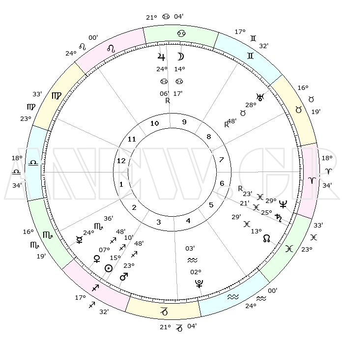 | | ΘΕΣΕΙΣ ΠΛΑΝΗΤΩΝ ΑΣΤΡΟΛΟΓΙΚΟΥ ΧΑΡΤΗ ΤΗΣ ΣΤΙΓΜΗΣ ΑΥΤΗΣ | | | | Πλανήτης | Ζώδιο | Μοίρες | Δεκαήμ. | Σε οίκο | Απόκλιση | | Ακμές των οίκων | | Ηλιος | Τοξότης | 15°60' | Δεύτερο | 4 | 22 S 42 | | 1ος | 26°57' | Λέων | | Σελήνη | Καρκίνος | 26°17' | Τρίτο | 11 | 24 N 30 | | 2ος | 20°29' | Παρθένος | | Ερμής | Σκορπιός | 25°24' | Τρίτο | 4 | 16 S 51 | | 3ος | 18°53' | Ζυγός | | Αφροδίτη | Τοξότης | 08°50' | Πρώτο | 4 | 21 S 20 | | 4ος | 21°45' | Σκορπιός | | Αρης | Τοξότης | 24°25' | Τρίτο | 4 | 24 S 02 | | 5ος | 26°09' | Τοξότης | | Δίας | Καρκίνος | 24°02'R | Τρίτο | 11 | 21 N 28 | | 6ος | 28°21' | Αιγόκερως | | Κρόνος | Ιχθείς | 25°22' | Τρίτο | 8 | 04 S 00 | | 7ος | 26°57' | Υδροχόος | | Ουρανός | Ταύρος | 28°46'R | Τρίτο | 10 | 19 N 41 | | 8ος | 20°29' | Ιχθείς | | Ποσειδώνας | Ιχθείς | 29°22'R | Τρίτο | 8 | 01 S 29 | | 9ος | 18°53' | Κριός | | Πλούτωνας | Υδροχόος | 02°04' | Πρώτο | 6 | 23 S 22 | | 10ος | 21°45' | Ταύρος | | Β. Δεσμός | Ιχθείς | 13°27' | Δεύτερο | 7 | 06 S 30 | | 11ος | 26°09' | Δίδυμοι | | Ωροσκόπος | Λέων | 26°57' | Τρίτο | | | 12ος | 28°21' | Καρκίνος | | Μεσουράνημα | Ταύρος | 21°45' | Τρίτο | | | |