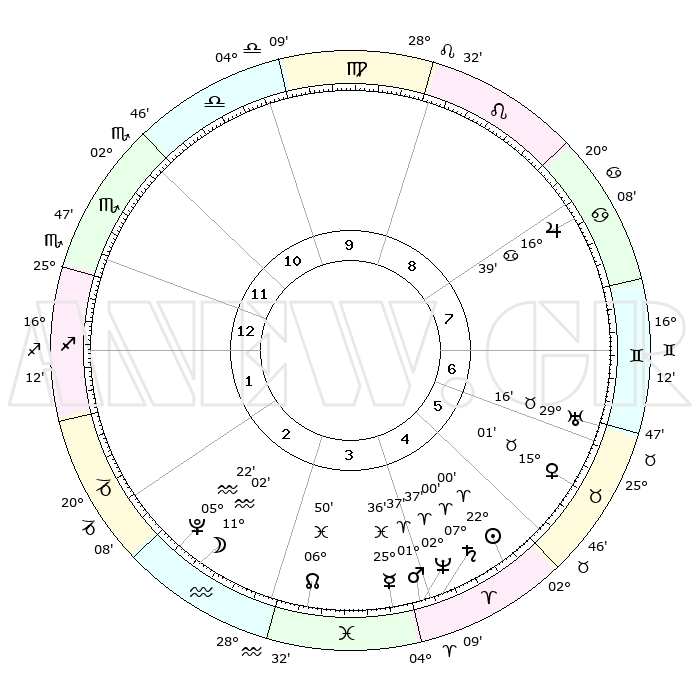 | | ΘΕΣΕΙΣ ΠΛΑΝΗΤΩΝ ΑΣΤΡΟΛΟΓΙΚΟΥ ΧΑΡΤΗ ΤΗΣ ΣΤΙΓΜΗΣ ΑΥΤΗΣ | | | | Πλανήτης | Ζώδιο | Μοίρες | Δεκαήμ. | Σε οίκο | Απόκλιση | | Ακμές των οίκων | | Ηλιος | Κριός | 21°56' | Τρίτο | 5 | 08 N 33 | | 1ος | 25°47' | Σκορπιός | | Σελήνη | Υδροχόος | 10°10' | Δεύτερο | 3 | 20 S 01 | | 2ος | 26°22' | Τοξότης | | Ερμής | Ιχθείς | 25°31' | Τρίτο | 4 | 04 S 02 | | 3ος | 01°23' | Υδροχόος | | Αφροδίτη | Ταύρος | 14°56' | Δεύτερο | 6 | 16 N 20 | | 4ος | 07°17' | Ιχθείς | | Αρης | Κριός | 01°34' | Πρώτο | 4 | 00 S 18 | | 5ος | 08°49' | Κριός | | Δίας | Καρκίνος | 16°39' | Δεύτερο | 8 | 22 N 46 | | 6ος | 04°26' | Ταύρος | | Κρόνος | Κριός | 06°60' | Πρώτο | 4 | 00 N 49 | | 7ος | 25°47' | Ταύρος | | Ουρανός | Ταύρος | 29°16' | Τρίτο | 7 | 19 N 49 | | 8ος | 26°22' | Δίδυμοι | | Ποσειδώνας | Κριός | 02°37' | Πρώτο | 4 | 00 S 10 | | 9ος | 01°23' | Λέων | | Πλούτωνας | Υδροχόος | 05°22' | Πρώτο | 3 | 22 S 47 | | 10ος | 07°17' | Παρθένος | | Β. Δεσμός | Ιχθείς | 06°50' | Πρώτο | 3 | 09 S 00 | | 11ος | 08°49' | Ζυγός | | Ωροσκόπος | Σκορπιός | 25°47' | Τρίτο | | | 12ος | 04°26' | Σκορπιός | | Μεσουράνημα | Παρθένος | 07°17' | Πρώτο | | | |
