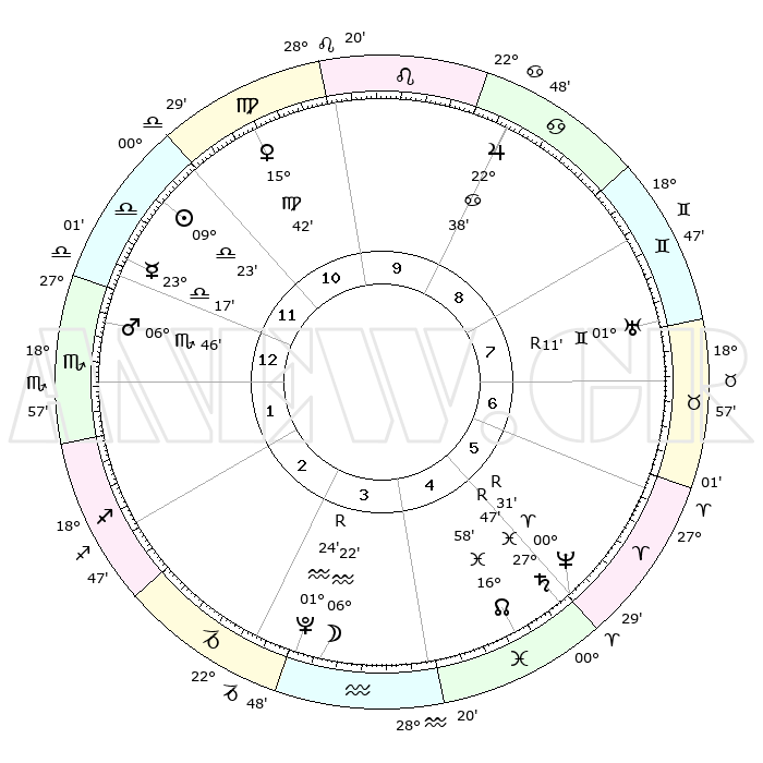 | ΘΕΣΕΙΣ ΠΛΑΝΗΤΩΝ ΑΣΤΡΟΛΟΓΙΚΟΥ ΧΑΡΤΗ ΤΗΣ ΣΤΙΓΜΗΣ ΑΥΤΗΣ | | Πλανήτης | Ζώδιο | Μοίρες | Δεκαήμ. | Σε οίκο | Απόκλιση | | Ακμές των οίκων | Ηλιος | Ζυγός | 09°19' | Πρώτο | 12 | 03 S 41 | | 1ος | 29°37' | Ζυγός | Σελήνη | Υδροχόος | 05°30' | Πρώτο | 4 | 22 S 21 | | 2ος | 28°01' | Σκορπιός | Ερμής | Ζυγός | 23°11' | Τρίτο | 12 | 09 S 14 | | 3ος | 29°56' | Τοξότης | Αφροδίτη | Παρθένος | 15°38' | Δεύτερο | 11 | 06 N 53 | | 4ος | 04°06' | Υδροχόος | Αρης | Σκορπιός | 06°44' | Πρώτο | 1 | 13 S 51 | | 5ος | 07°01' | Ιχθείς | Δίας | Καρκίνος | 22°37' | Τρίτο | 9 | 21 N 34 | | 6ος | 05°44' | Κριός | Κρόνος | Ιχθείς | 27°48'R | Τρίτο | 5 | 03 S 11 | | 7ος | 29°37' | Κριός | Ουρανός | Δίδυμοι | 01°11'R | Πρώτο | 8 | 20 N 11 | | 8ος | 28°01' | Ταύρος | Ποσειδώνας | Κριός | 00°31'R | Πρώτο | 5 | 01 S 03 | | 9ος | 29°56' | Δίδυμοι | Πλούτωνας | Υδροχόος | 01°24'R | Πρώτο | 3 | 23 S 32 | | 10ος | 04°06' | Λέων | Β. Δεσμός | Ιχθείς | 16°59' | Δεύτερο | 5 | 05 S 09 | | 11ος | 07°01' | Παρθένος | Ωροσκόπος | Ζυγός | 29°37' | Τρίτο | | | 12ος | 05°44' | Ζυγός | Μεσουράνημα | Λέων | 04°06' | Πρώτο | | | |