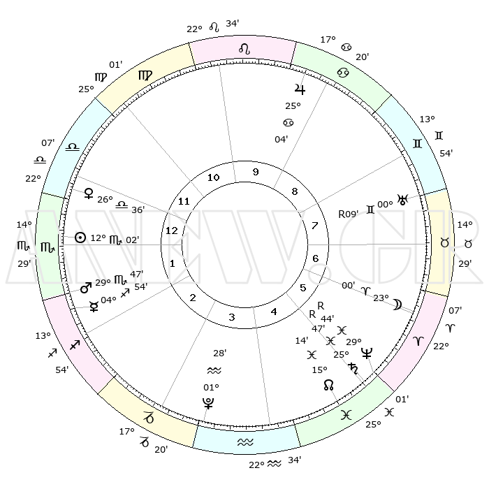 | | ΘΕΣΕΙΣ ΠΛΑΝΗΤΩΝ ΑΣΤΡΟΛΟΓΙΚΟΥ ΧΑΡΤΗ ΤΗΣ ΣΤΙΓΜΗΣ ΑΥΤΗΣ | | | | Πλανήτης | Ζώδιο | Μοίρες | Δεκαήμ. | Σε οίκο | Απόκλιση | | Ακμές των οίκων | | Ηλιος | Σκορπιός | 11°44' | Δεύτερο | 4 | 15 S 21 | | 1ος | 17°09' | Λέων | | Σελήνη | Κριός | 18°32' | Δεύτερο | 9 | 09 N 44 | | 2ος | 09°41' | Παρθένος | | Ερμής | Τοξότης | 04°43' | Πρώτο | 4 | 23 S 53 | | 3ος | 06°59' | Ζυγός | | Αφροδίτη | Ζυγός | 26°13' | Τρίτο | 3 | 08 S 47 | | 4ος | 09°31' | Σκορπιός | | Αρης | Σκορπιός | 29°34' | Τρίτο | 4 | 20 S 28 | | 5ος | 14°39' | Τοξότης | | Δίας | Καρκίνος | 25°03' | Τρίτο | 12 | 21 N 12 | | 6ος | 17°52' | Αιγόκερως | | Κρόνος | Ιχθείς | 25°48'R | Τρίτο | 8 | 03 S 56 | | 7ος | 17°09' | Υδροχόος | | Ουρανός | Δίδυμοι | 00°10'R | Πρώτο | 10 | 19 N 58 | | 8ος | 09°41' | Ιχθείς | | Ποσειδώνας | Ιχθείς | 29°44'R | Τρίτο | 8 | 01 S 22 | | 9ος | 06°59' | Κριός | | Πλούτωνας | Υδροχόος | 01°28' | Πρώτο | 6 | 23 S 30 | | 10ος | 09°31' | Ταύρος | | Β. Δεσμός | Ιχθείς | 15°15' | Δεύτερο | 8 | 05 S 49 | | 11ος | 14°39' | Δίδυμοι | | Ωροσκόπος | Λέων | 17°09' | Δεύτερο | | | 12ος | 17°52' | Καρκίνος | | Μεσουράνημα | Ταύρος | 09°31' | Πρώτο | | | |
