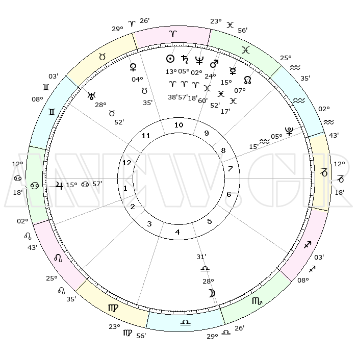 | | ΘΕΣΕΙΣ ΠΛΑΝΗΤΩΝ ΑΣΤΡΟΛΟΓΙΚΟΥ ΧΑΡΤΗ ΤΗΣ ΣΤΙΓΜΗΣ ΑΥΤΗΣ | | | | Πλανήτης | Ζώδιο | Μοίρες | Δεκαήμ. | Σε οίκο | Απόκλιση | | Ακμές των οίκων | | Ηλιος | Κριός | 13°34' | Δεύτερο | 11 | 05 N 21 | | 1ος | 17°22' | Δίδυμοι | | Σελήνη | Ζυγός | 27°35' | Τρίτο | 5 | 14 S 15 | | 2ος | 09°19' | Καρκίνος | | Ερμής | Ιχθείς | 15°48' | Δεύτερο | 10 | 07 S 07 | | 3ος | 00°35' | Λέων | | Αφροδίτη | Ταύρος | 04°30' | Πρώτο | 11 | 12 N 41 | | 4ος | 25°05' | Λέων | | Αρης | Ιχθείς | 24°56' | Τρίτο | 10 | 02 S 58 | | 5ος | 26°46' | Παρθένος | | Δίας | Καρκίνος | 15°56' | Δεύτερο | 2 | 22 N 51 | | 6ος | 06°59' | Σκορπιός | | Κρόνος | Κριός | 05°57' | Πρώτο | 11 | 00 N 24 | | 7ος | 17°22' | Τοξότης | | Ουρανός | Ταύρος | 28°52' | Τρίτο | 12 | 19 N 44 | | 8ος | 09°19' | Αιγόκερως | | Ποσειδώνας | Κριός | 02°18' | Πρώτο | 11 | 00 S 17 | | 9ος | 00°35' | Υδροχόος | | Πλούτωνας | Υδροχόος | 05°15' | Πρώτο | 9 | 22 S 47 | | 10ος | 25°05' | Υδροχόος | | Β. Δεσμός | Ιχθείς | 07°17' | Πρώτο | 10 | 08 S 50 | | 11ος | 26°46' | Ιχθείς | | Ωροσκόπος | Δίδυμοι | 17°22' | Δεύτερο | | | 12ος | 06°59' | Ταύρος | | Μεσουράνημα | Υδροχόος | 25°05' | Τρίτο | | | |