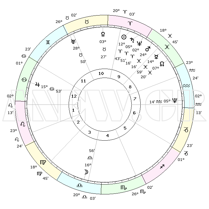 | | ΘΕΣΕΙΣ ΠΛΑΝΗΤΩΝ ΑΣΤΡΟΛΟΓΙΚΟΥ ΧΑΡΤΗ ΤΗΣ ΣΤΙΓΜΗΣ ΑΥΤΗΣ | | | | Πλανήτης | Ζώδιο | Μοίρες | Δεκαήμ. | Σε οίκο | Απόκλιση | | Ακμές των οίκων | | Ηλιος | Κριός | 12°39' | Δεύτερο | 10 | 05 N 00 | | 1ος | 10°49' | Καρκίνος | | Σελήνη | Ζυγός | 16°02' | Δεύτερο | 4 | 09 S 13 | | 2ος | 01°14' | Λέων | | Ερμής | Ιχθείς | 14°55' | Δεύτερο | 9 | 07 S 20 | | 3ος | 23°56' | Λέων | | Αφροδίτη | Ταύρος | 03°21' | Πρώτο | 11 | 12 N 16 | | 4ος | 22°03' | Παρθένος | | Αρης | Ιχθείς | 24°13' | Τρίτο | 10 | 03 S 15 | | 5ος | 27°24' | Ζυγός | | Δίας | Καρκίνος | 15°52' | Δεύτερο | 1 | 22 N 51 | | 6ος | 06°14' | Τοξότης | | Κρόνος | Κριός | 05°50' | Πρώτο | 10 | 00 N 22 | | 7ος | 10°49' | Αιγόκερως | | Ουρανός | Ταύρος | 28°49' | Τρίτο | 11 | 19 N 44 | | 8ος | 01°14' | Υδροχόος | | Ποσειδώνας | Κριός | 02°16' | Πρώτο | 10 | 00 S 18 | | 9ος | 23°56' | Υδροχόος | | Πλούτωνας | Υδροχόος | 05°14' | Πρώτο | 8 | 22 S 47 | | 10ος | 22°03' | Ιχθείς | | Β. Δεσμός | Ιχθείς | 07°20' | Πρώτο | 9 | 08 S 49 | | 11ος | 27°24' | Κριός | | Ωροσκόπος | Καρκίνος | 10°49' | Δεύτερο | | | 12ος | 06°14' | Δίδυμοι | | Μεσουράνημα | Ιχθείς | 22°03' | Τρίτο | | | |