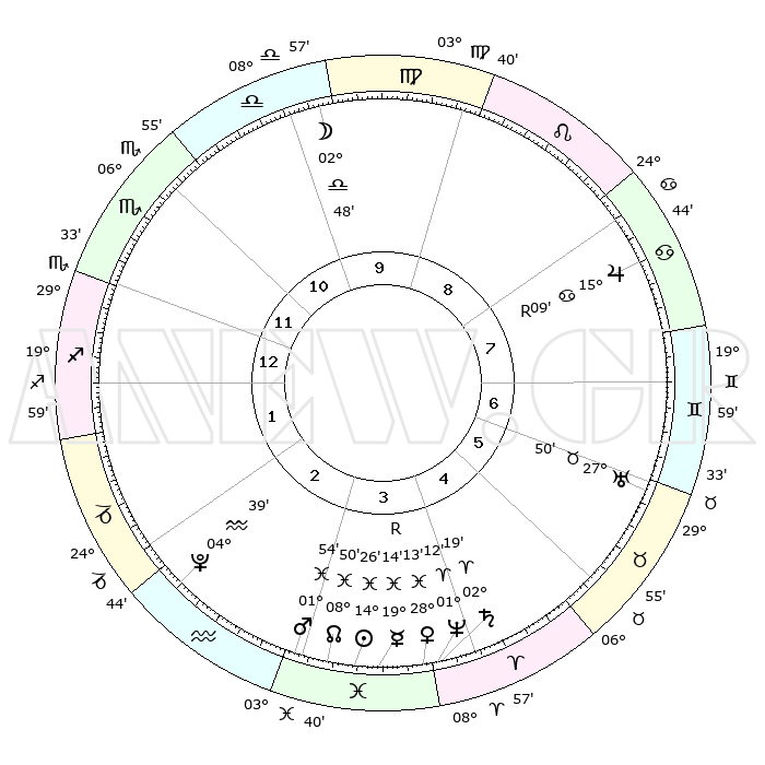 | | ΘΕΣΕΙΣ ΠΛΑΝΗΤΩΝ ΑΣΤΡΟΛΟΓΙΚΟΥ ΧΑΡΤΗ ΤΗΣ ΣΤΙΓΜΗΣ ΑΥΤΗΣ | | | | Πλανήτης | Ζώδιο | Μοίρες | Δεκαήμ. | Σε οίκο | Απόκλιση | | Ακμές των οίκων | | Ηλιος | Ιχθείς | 14°22' | Δεύτερο | 3 | 06 S 09 | | 1ος | 01°35' | Τοξότης | | Σελήνη | Ζυγός | 02°00' | Πρώτο | 10 | 02 S 42 | | 2ος | 02°56' | Αιγόκερως | | Ερμής | Ιχθείς | 19°17'R | Δεύτερο | 4 | 00 S 51 | | 3ος | 08°54' | Υδροχόος | | Αφροδίτη | Ιχθείς | 28°08' | Τρίτο | 4 | 01 S 56 | | 4ος | 14°58' | Ιχθείς | | Αρης | Ιχθείς | 01°52' | Πρώτο | 3 | 11 S 50 | | 5ος | 15°48' | Κριός | | Δίας | Καρκίνος | 15°09'R | Δεύτερο | 8 | 22 N 55 | | 6ος | 10°38' | Ταύρος | | Κρόνος | Κριός | 02°19' | Πρώτο | 4 | 01 S 02 | | 7ος | 01°35' | Δίδυμοι | | Ουρανός | Ταύρος | 27°49' | Τρίτο | 6 | 19 N 30 | | 8ος | 02°56' | Καρκίνος | | Ποσειδώνας | Κριός | 01°12' | Πρώτο | 4 | 00 S 44 | | 9ος | 08°54' | Λέων | | Πλούτωνας | Υδροχόος | 04°38' | Πρώτο | 2 | 22 S 51 | | 10ος | 14°58' | Παρθένος | | Β. Δεσμός | Ιχθείς | 08°50' | Πρώτο | 3 | 08 S 15 | | 11ος | 15°48' | Ζυγός | | Ωροσκόπος | Τοξότης | 01°35' | Πρώτο | | | 12ος | 10°38' | Σκορπιός | | Μεσουράνημα | Παρθένος | 14°58' | Δεύτερο | | | |