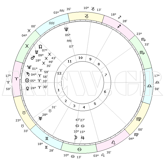 | | ΘΕΣΕΙΣ ΠΛΑΝΗΤΩΝ ΑΣΤΡΟΛΟΓΙΚΟΥ ΧΑΡΤΗ ΤΗΣ ΣΤΙΓΜΗΣ ΑΥΤΗΣ | | | | Πλανήτης | Ζώδιο | Μοίρες | Δεκαήμ. | Σε οίκο | Απόκλιση | | Ακμές των οίκων | | Ηλιος | Κριός | 05°29' | Πρώτο | 1 | 02 N 11 | | 1ος | 06°48' | Ιχθείς | | Σελήνη | Καρκίνος | 09°47' | Πρώτο | 5 | 27 N 32 | | 2ος | 21°31' | Κριός | | Ερμής | Ιχθείς | 09°47' | Πρώτο | 1 | 08 S 07 | | 3ος | 22°55' | Ταύρος | | Αφροδίτη | Κριός | 24°25' | Τρίτο | 2 | 08 N 50 | | 4ος | 16°42' | Δίδυμοι | | Αρης | Ιχθείς | 18°32' | Δεύτερο | 1 | 05 S 31 | | 5ος | 08°24' | Καρκίνος | | Δίας | Καρκίνος | 15°27' | Δεύτερο | 5 | 22 N 54 | | 6ος | 02°42' | Λέων | | Κρόνος | Κριός | 04°56' | Πρώτο | 1 | 00 N 00 | | 7ος | 06°48' | Παρθένος | | Ουρανός | Ταύρος | 28°31' | Τρίτο | 3 | 19 N 39 | | 8ος | 21°31' | Ζυγός | | Ποσειδώνας | Κριός | 01°59' | Πρώτο | 1 | 00 S 25 | | 9ος | 22°55' | Σκορπιός | | Πλούτωνας | Υδροχόος | 05°07' | Πρώτο | 12 | 22 S 48 | | 10ος | 16°42' | Τοξότης | | Β. Δεσμός | Ιχθείς | 07°43' | Πρώτο | 1 | 08 S 40 | | 11ος | 08°24' | Αιγόκερως | | Ωροσκόπος | Ιχθείς | 06°48' | Πρώτο | | | 12ος | 02°42' | Υδροχόος | | Μεσουράνημα | Τοξότης | 16°42' | Δεύτερο | | | |