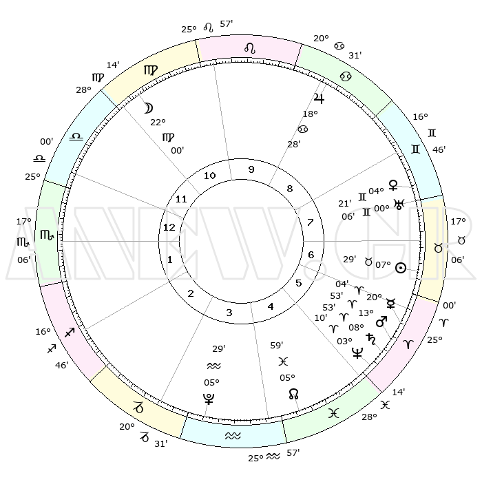 | | ΘΕΣΕΙΣ ΠΛΑΝΗΤΩΝ ΑΣΤΡΟΛΟΓΙΚΟΥ ΧΑΡΤΗ ΤΗΣ ΣΤΙΓΜΗΣ ΑΥΤΗΣ | | | | Πλανήτης | Ζώδιο | Μοίρες | Δεκαήμ. | Σε οίκο | Απόκλιση | | Ακμές των οίκων | | Ηλιος | Ταύρος | 07°26' | Πρώτο | 7 | 13 N 59 | | 1ος | 00°12' | Σκορπιός | | Σελήνη | Παρθένος | 21°16' | Τρίτο | 11 | 02 N 20 | | 2ος | 28°37' | Σκορπιός | | Ερμής | Κριός | 19°58' | Δεύτερο | 6 | 05 N 44 | | 3ος | 00°35' | Αιγόκερως | | Αφροδίτη | Δίδυμοι | 04°17' | Πρώτο | 8 | 21 N 44 | | 4ος | 04°47' | Υδροχόος | | Αρης | Κριός | 13°51' | Δεύτερο | 6 | 04 N 37 | | 5ος | 07°42' | Ιχθείς | | Δίας | Καρκίνος | 18°28' | Δεύτερο | 9 | 22 N 33 | | 6ος | 06°22' | Κριός | | Κρόνος | Κριός | 08°53' | Πρώτο | 6 | 01 N 32 | | 7ος | 00°12' | Ταύρος | | Ουρανός | Δίδυμοι | 00°06' | Πρώτο | 8 | 20 N 00 | | 8ος | 28°37' | Ταύρος | | Ποσειδώνας | Κριός | 03°09' | Πρώτο | 5 | 00 N 03 | | 9ος | 00°35' | Καρκίνος | | Πλούτωνας | Υδροχόος | 05°29' | Πρώτο | 4 | 22 S 48 | | 10ος | 04°47' | Λέων | | Β. Δεσμός | Ιχθείς | 05°59' | Πρώτο | 4 | 09 S 19 | | 11ος | 07°42' | Παρθένος | | Ωροσκόπος | Σκορπιός | 00°12' | Πρώτο | | | 12ος | 06°22' | Ζυγός | | Μεσουράνημα | Λέων | 04°47' | Πρώτο | | | |