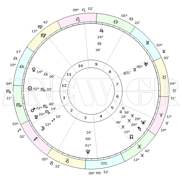 | | ΘΕΣΕΙΣ ΠΛΑΝΗΤΩΝ ΑΣΤΡΟΛΟΓΙΚΟΥ ΧΑΡΤΗ ΤΗΣ ΣΤΙΓΜΗΣ ΑΥΤΗΣ | | | | Πλανήτης | Ζώδιο | Μοίρες | Δεκαήμ. | Σε οίκο | Απόκλιση | | Ακμές των οίκων | | Ηλιος | Σκορπιός | 01°34' | Πρώτο | 6 | 12 S 01 | | 1ος | 11°55' | Δίδυμοι | | Σελήνη | Τοξότης | 06°35' | Πρώτο | 6 | 26 S 22 | | 2ος | 04°37' | Καρκίνος | | Ερμής | Σκορπιός | 24°45' | Τρίτο | 6 | 21 S 29 | | 3ος | 25°49' | Καρκίνος | | Αφροδίτη | Ζυγός | 13°30' | Δεύτερο | 5 | 03 S 55 | | 4ος | 19°40' | Λέων | | Αρης | Σκορπιός | 22°20' | Τρίτο | 6 | 18 S 39 | | 5ος | 20°19' | Παρθένος | | Δίας | Καρκίνος | 24°38' | Τρίτο | 2 | 21 N 16 | | 6ος | 00°13' | Σκορπιός | | Κρόνος | Ιχθείς | 26°18'R | Τρίτο | 11 | 03 S 45 | | 7ος | 11°55' | Τοξότης | | Ουρανός | Δίδυμοι | 00°32'R | Πρώτο | 12 | 20 N 03 | | 8ος | 04°37' | Αιγόκερως | | Ποσειδώνας | Ιχθείς | 29°57'R | Τρίτο | 11 | 01 S 17 | | 9ος | 25°49' | Αιγόκερως | | Πλούτωνας | Υδροχόος | 01°24' | Πρώτο | 9 | 23 S 32 | | 10ος | 19°40' | Υδροχόος | | Β. Δεσμός | Ιχθείς | 15°47' | Δεύτερο | 10 | 05 S 36 | | 11ος | 20°19' | Ιχθείς | | Ωροσκόπος | Δίδυμοι | 11°55' | Δεύτερο | | | 12ος | 00°13' | Ταύρος | | Μεσουράνημα | Υδροχόος | 19°40' | Δεύτερο | | | |